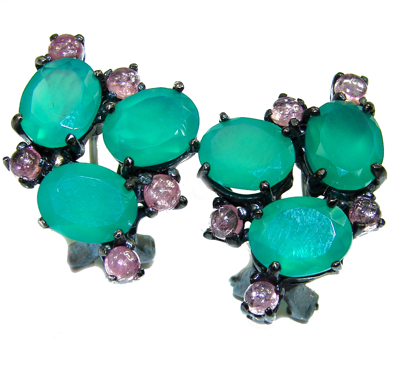 Green Agate black rhodium over .925 Sterling Silver earrings