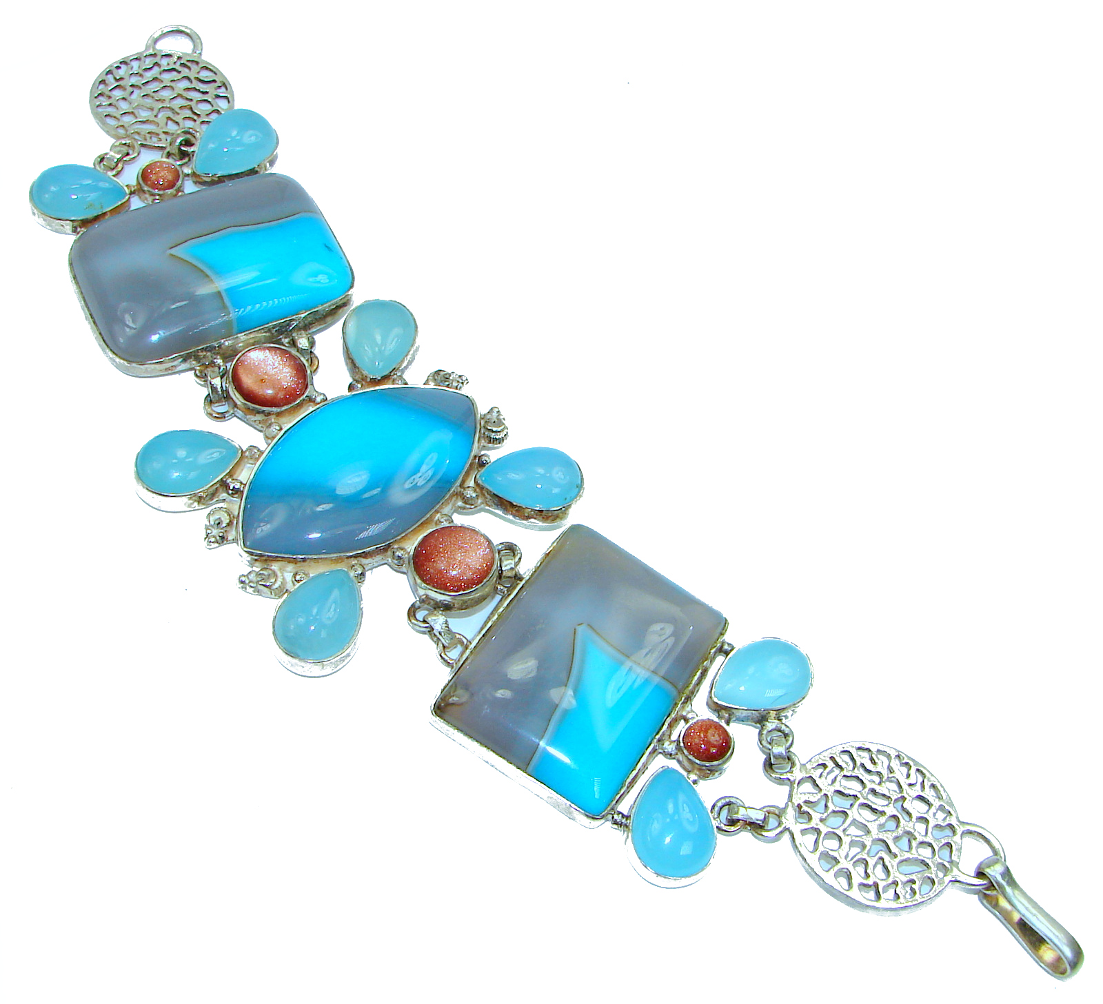 Large 73. 9 grams Agate handcrafted .925 Sterling Silver Bracelet