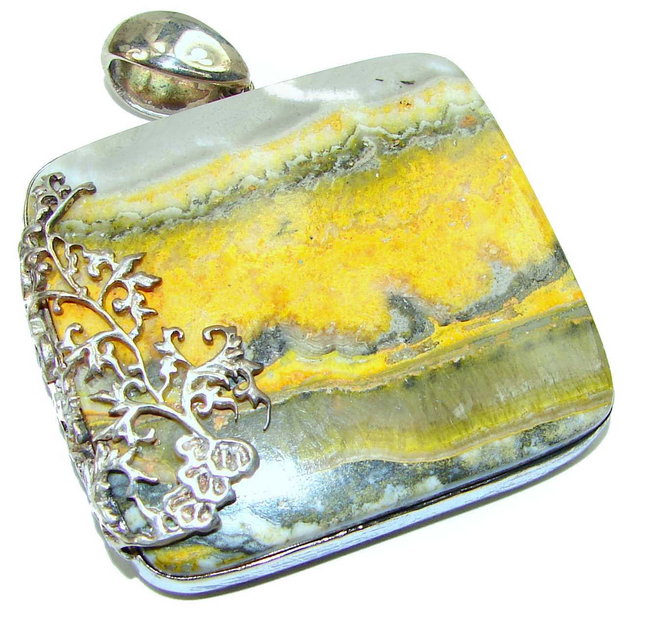 Vivid Beauty Yellow Bumble Bee .925 Jasper Sterling Silver pendant