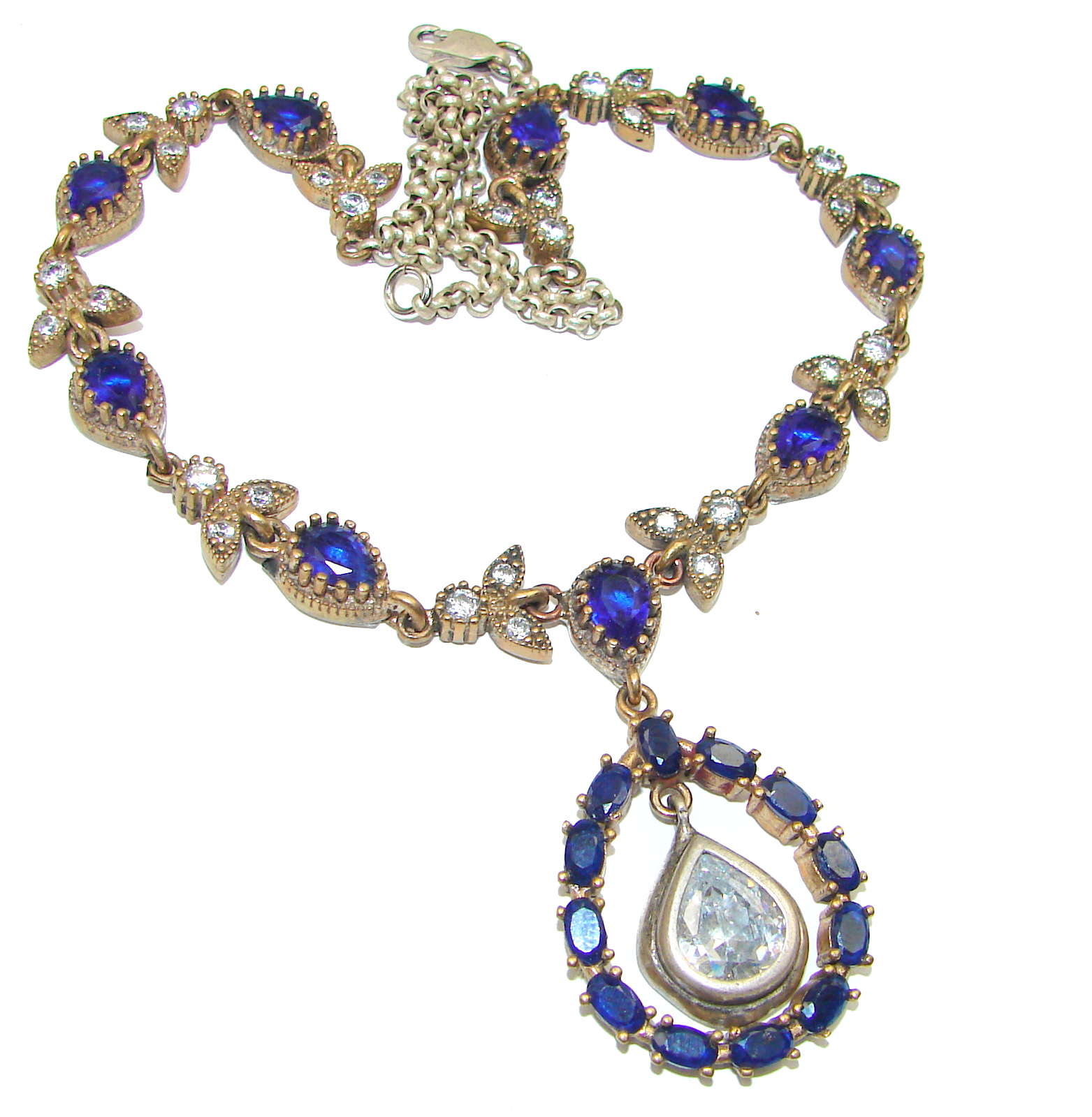 Magnificent Jewel created Sapphire .925 Sterling Silver handcrafted necklace
