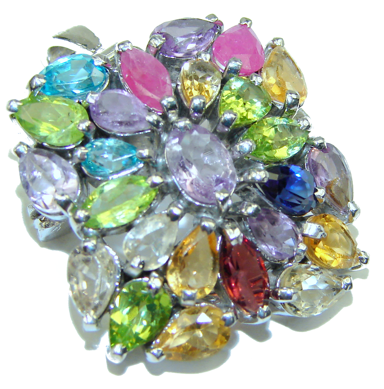 Precious Treasure Genuine Multigem .925 Sterling Silver handmade Pendant - Brooch