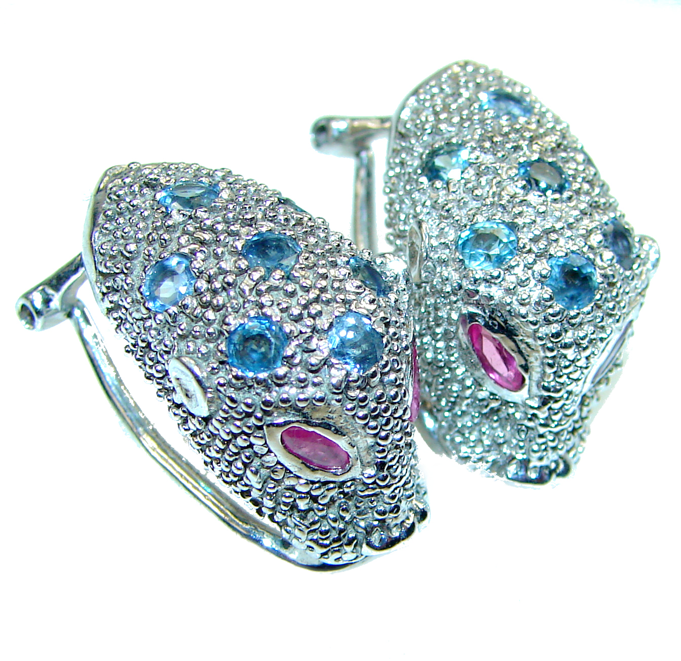 Cheetah Authentic Sapphire Ruby .925 Sterling Silver handmade earrings