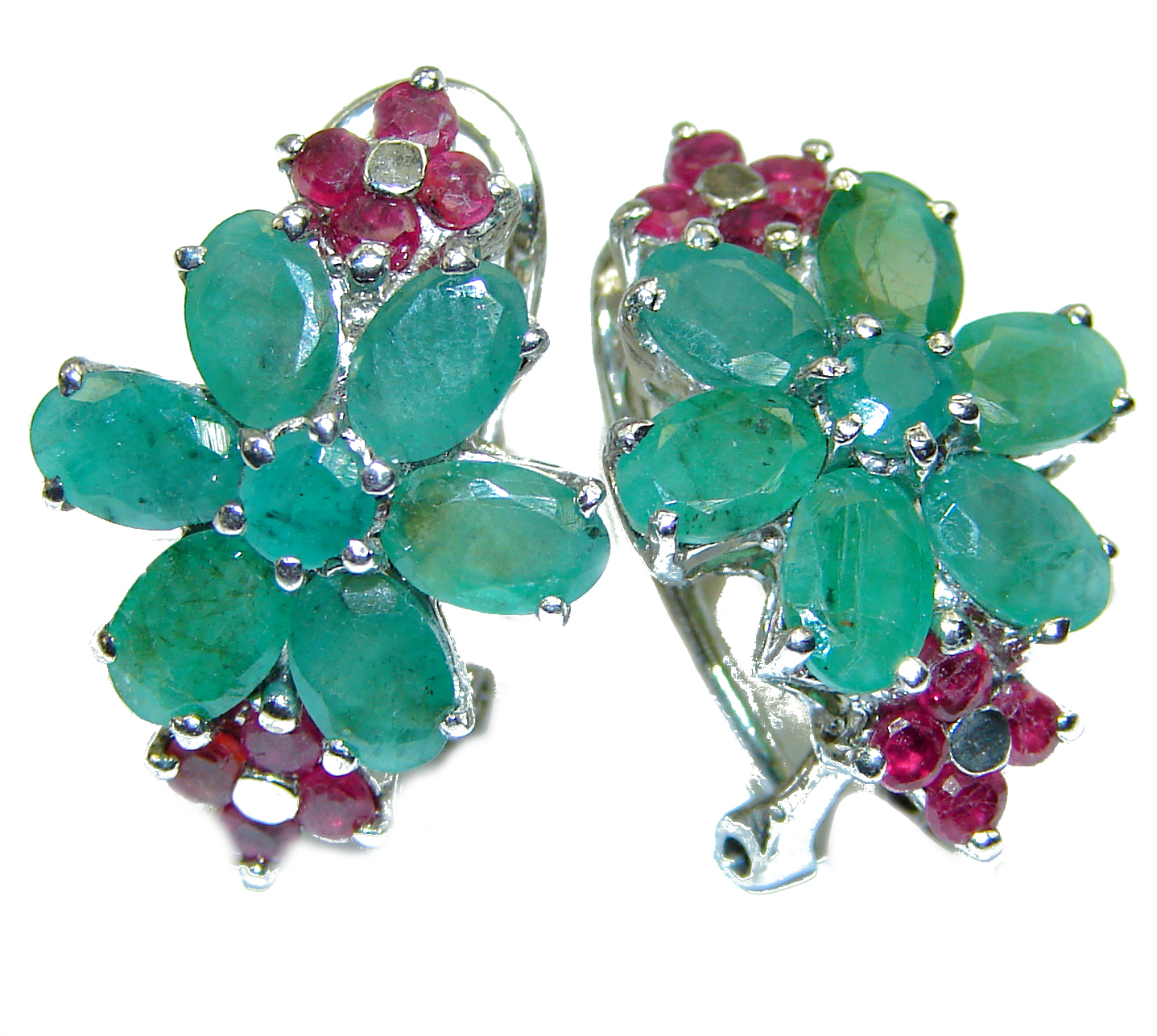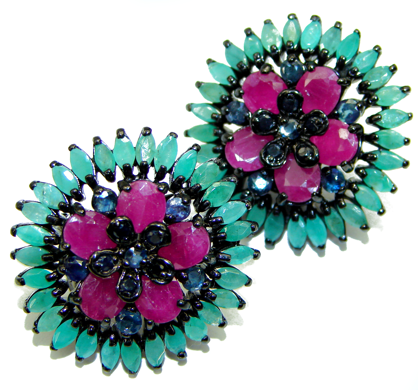 Authentic Emerald Ruby black rhodium over .925 Sterling Silver handcrafted earrings