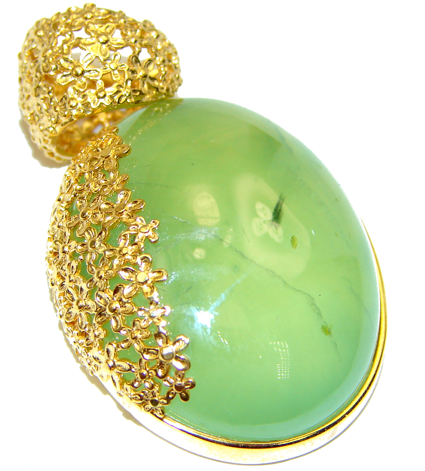 Victorian Style genuine Prehnite 14K Gold over .925 Sterling Silver handmade Pendant- Brooch