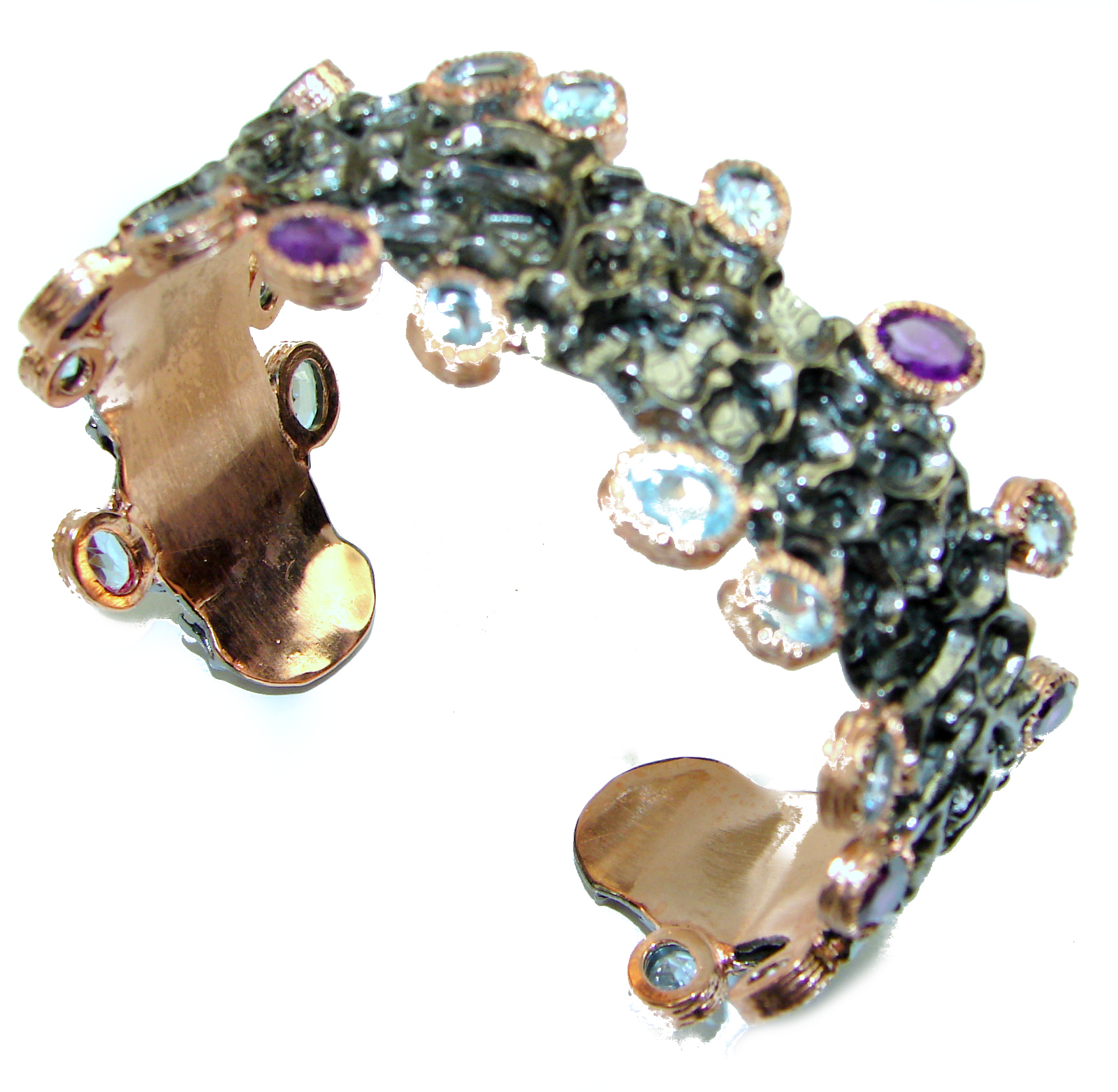 Vintage Design GENUINE Multigem black rhodium over .925 Sterling Silver handcrafted ring size 8 1/4