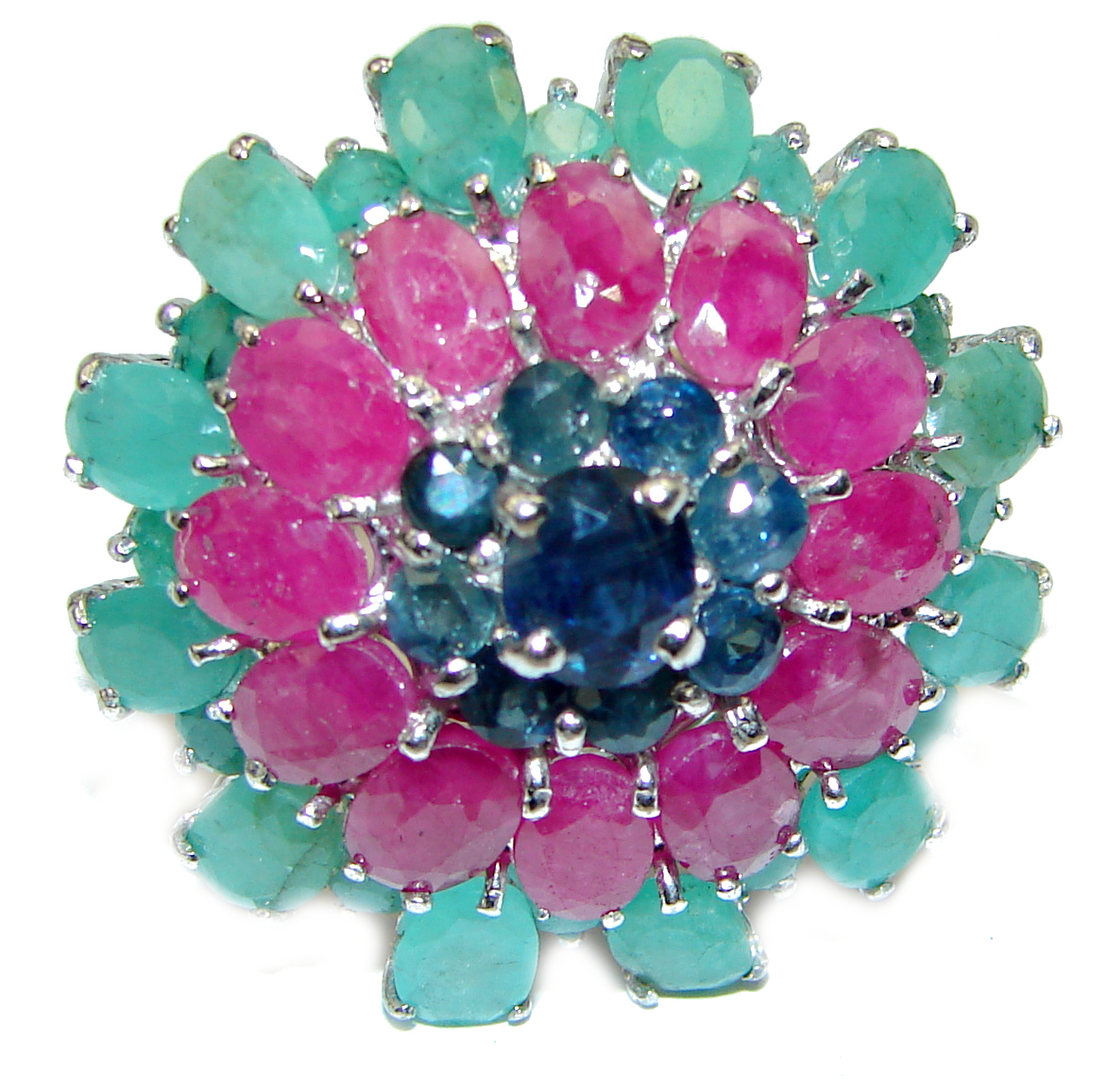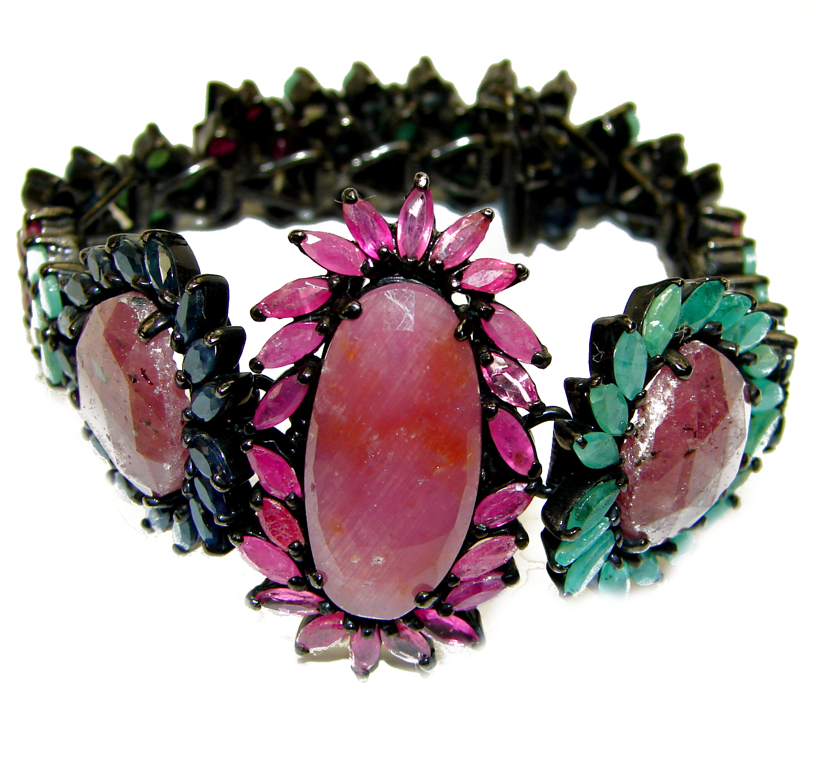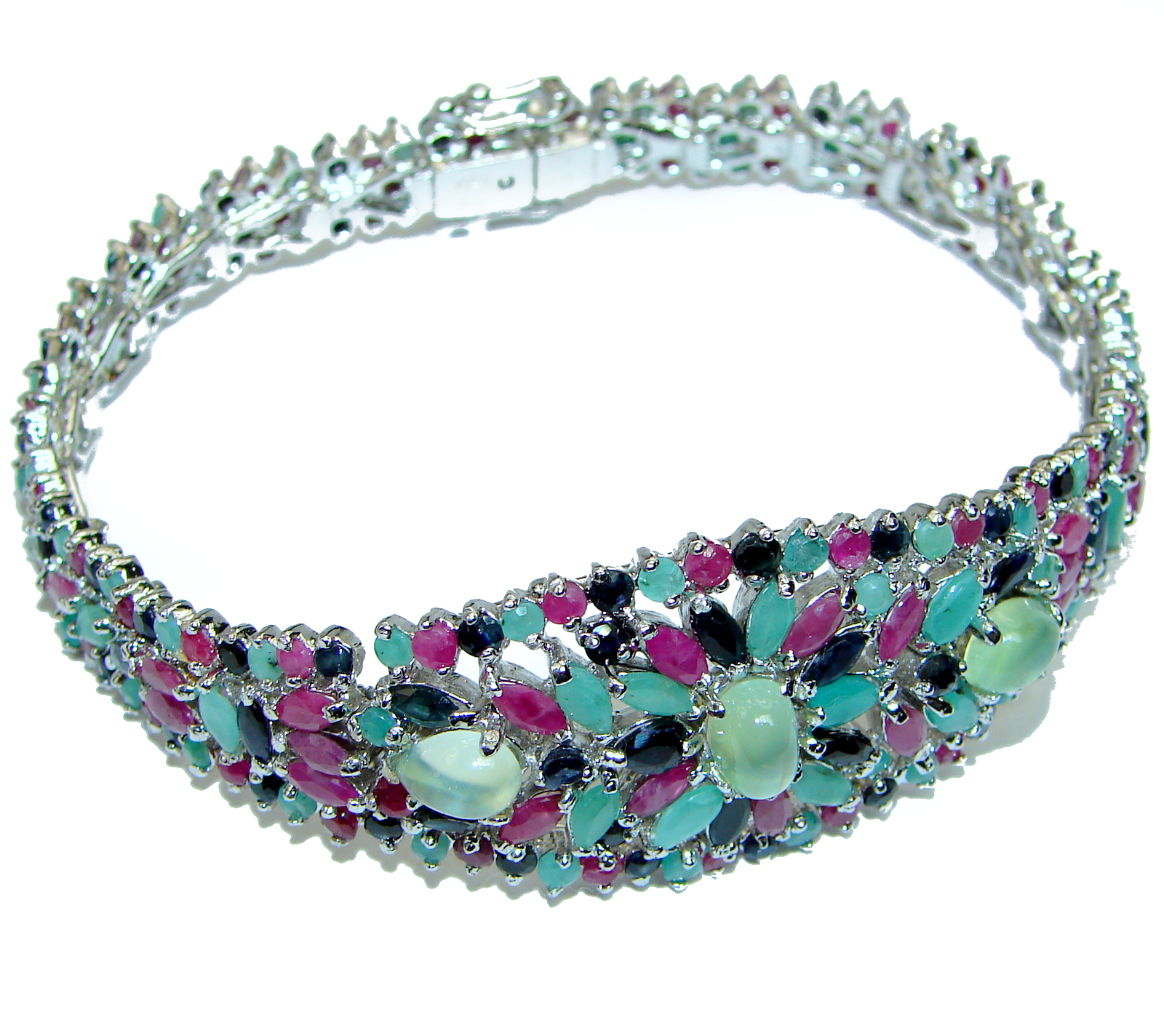 Beauty of Nature Ruby Emerald Sapphire handmade .925 Sterling Silver Bracelet