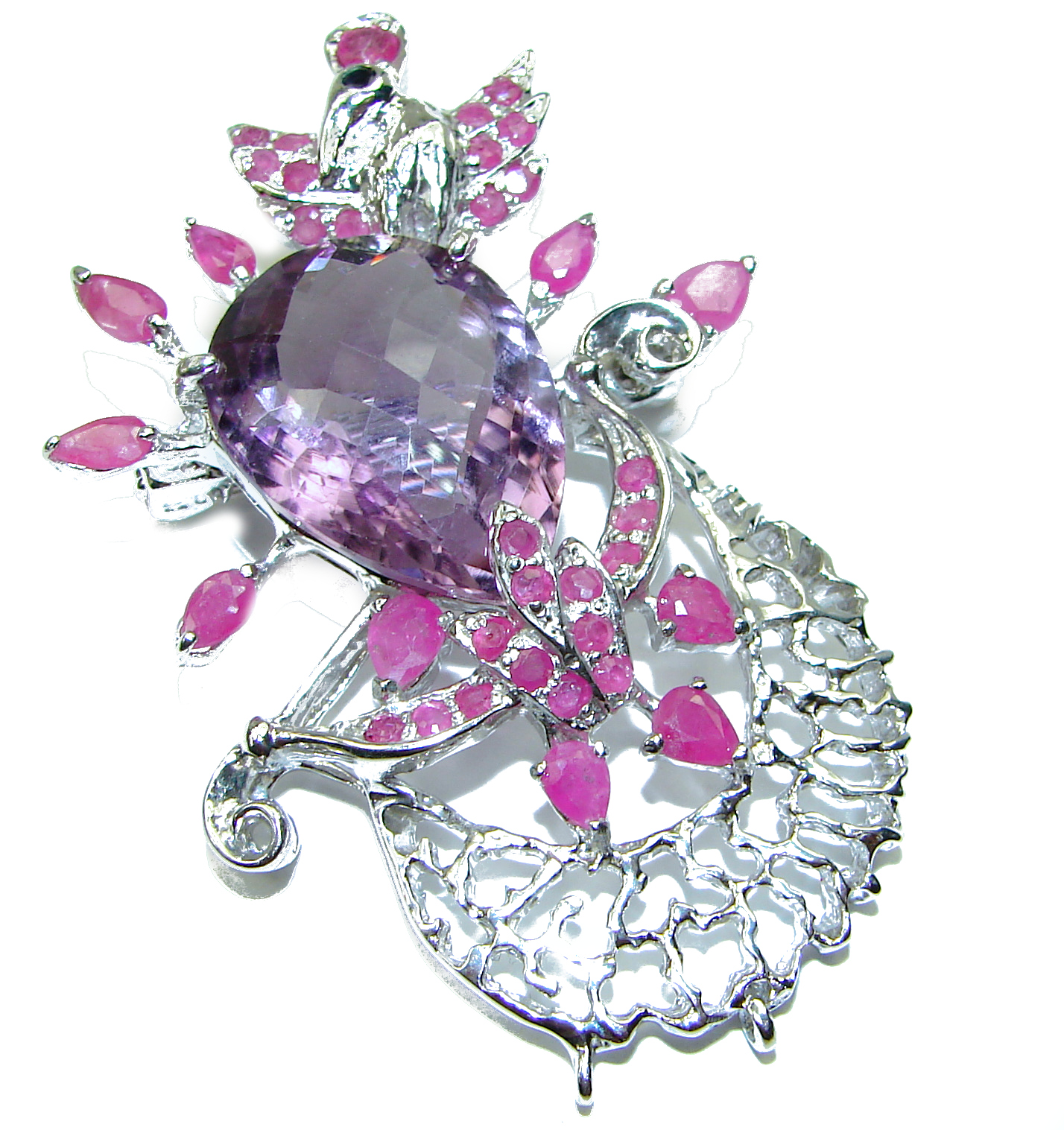 Vintage Design Amethyst Ruby .925 Sterling Silver handcrafted Pendant & Brooch
