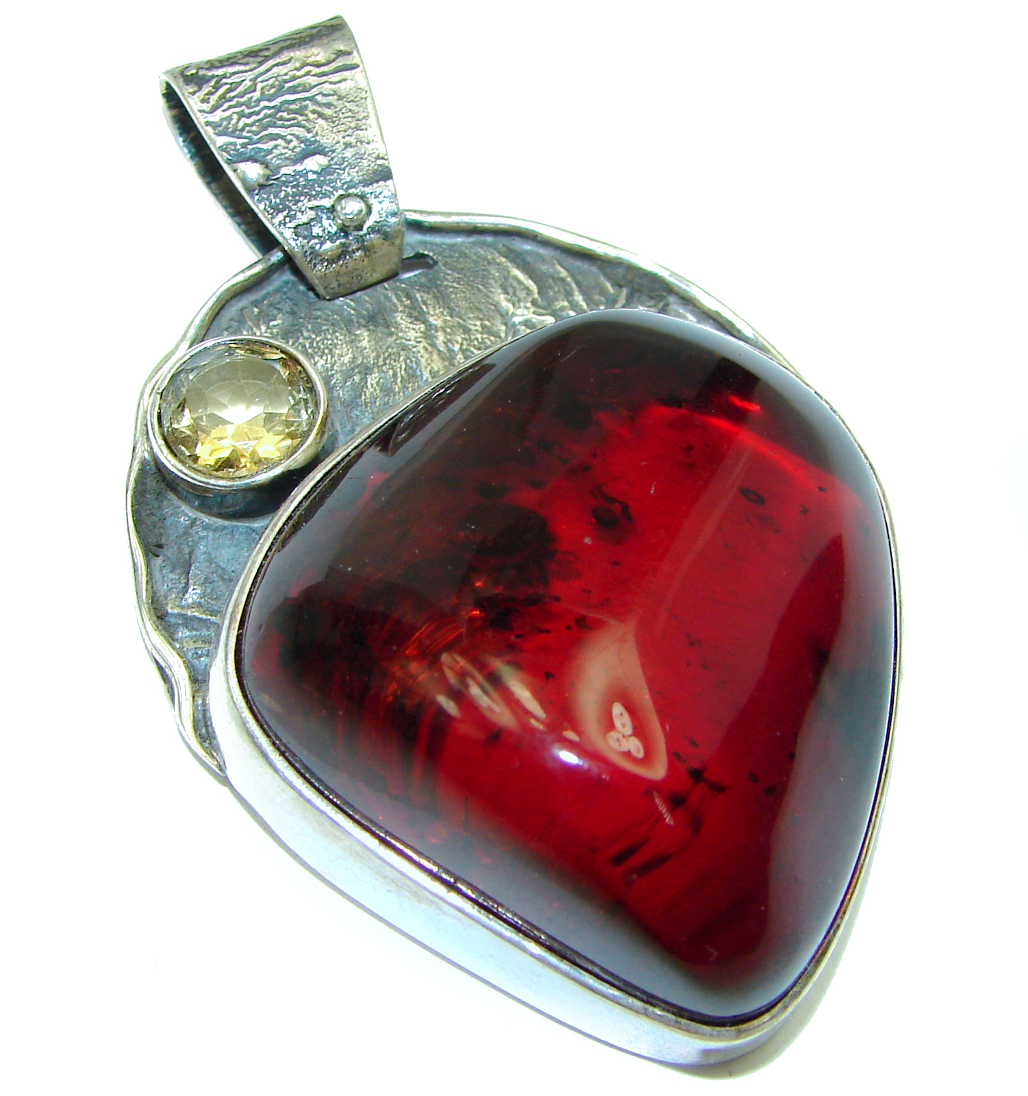 Genuine Cherry Baltic Amber .925 Sterling Silver handmade pendant