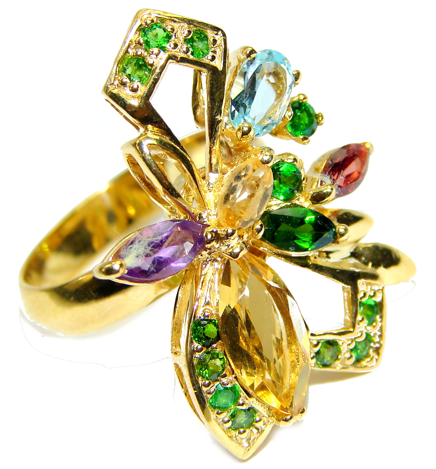 Vintage Style Citrine 14K Gold over .925 Sterling Silver handmade HUGE Cocktail Ring s. 8 3/4