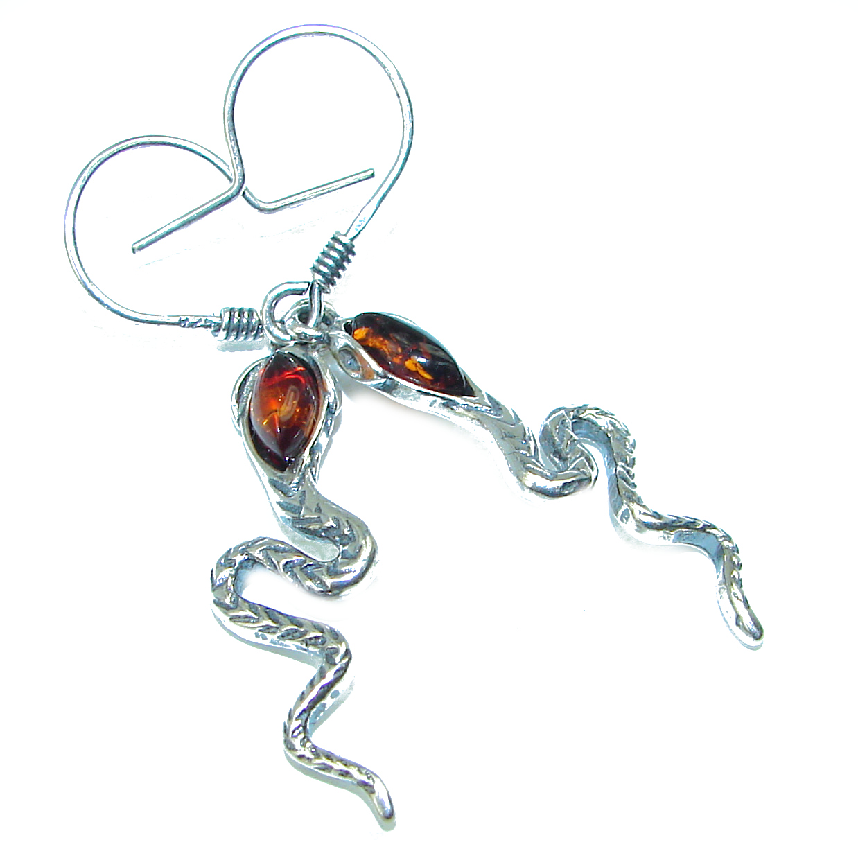 Snakes Green Baltic Amber .925 Sterling Silver Earrings