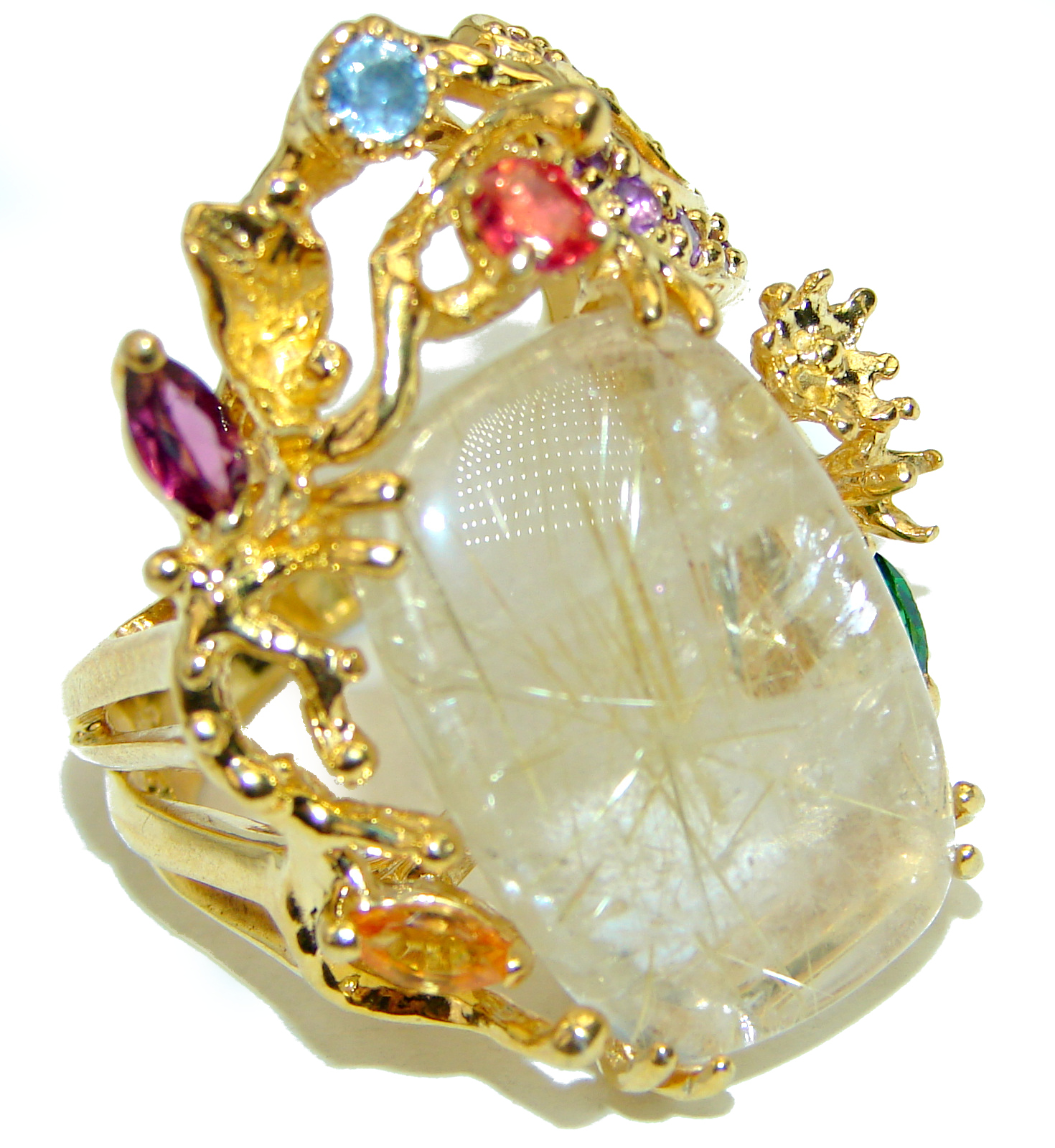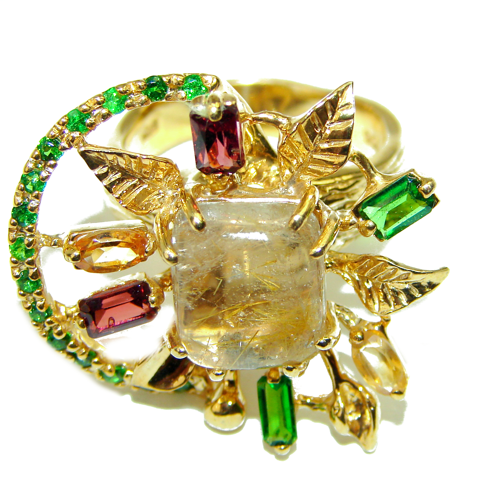 Large Best quality Golden Rutilated Quartz 14K Gold over .925 Sterling Silver handcrafted Ring Size 8 3/4