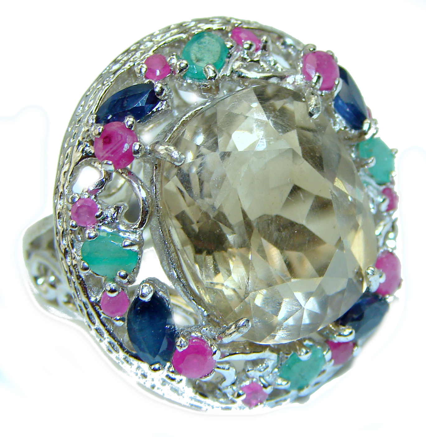 Luxurious Style 11.6 carat Natural Citrine .925 Sterling Silver handmade Cocktail Ring s. 9