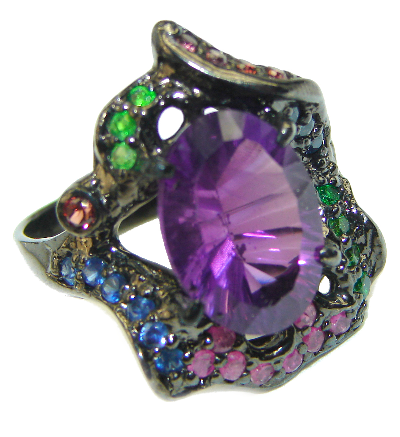 Purple Extravaganza Amethyst black rhodium over .925 Sterling Silver HANDCRAFTED Ring size 7 1/2