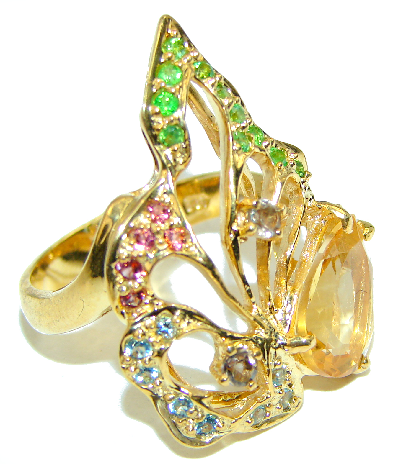 Summer Time authentic Multigem 14K Gold over .925 Sterling Silver handcrafted ring size 7 1/4