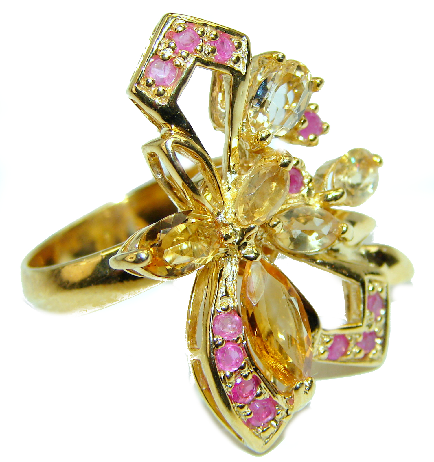 Vintage Style Citrine 14K Gold over .925 Sterling Silver handmade Cocktail Ring s. 8