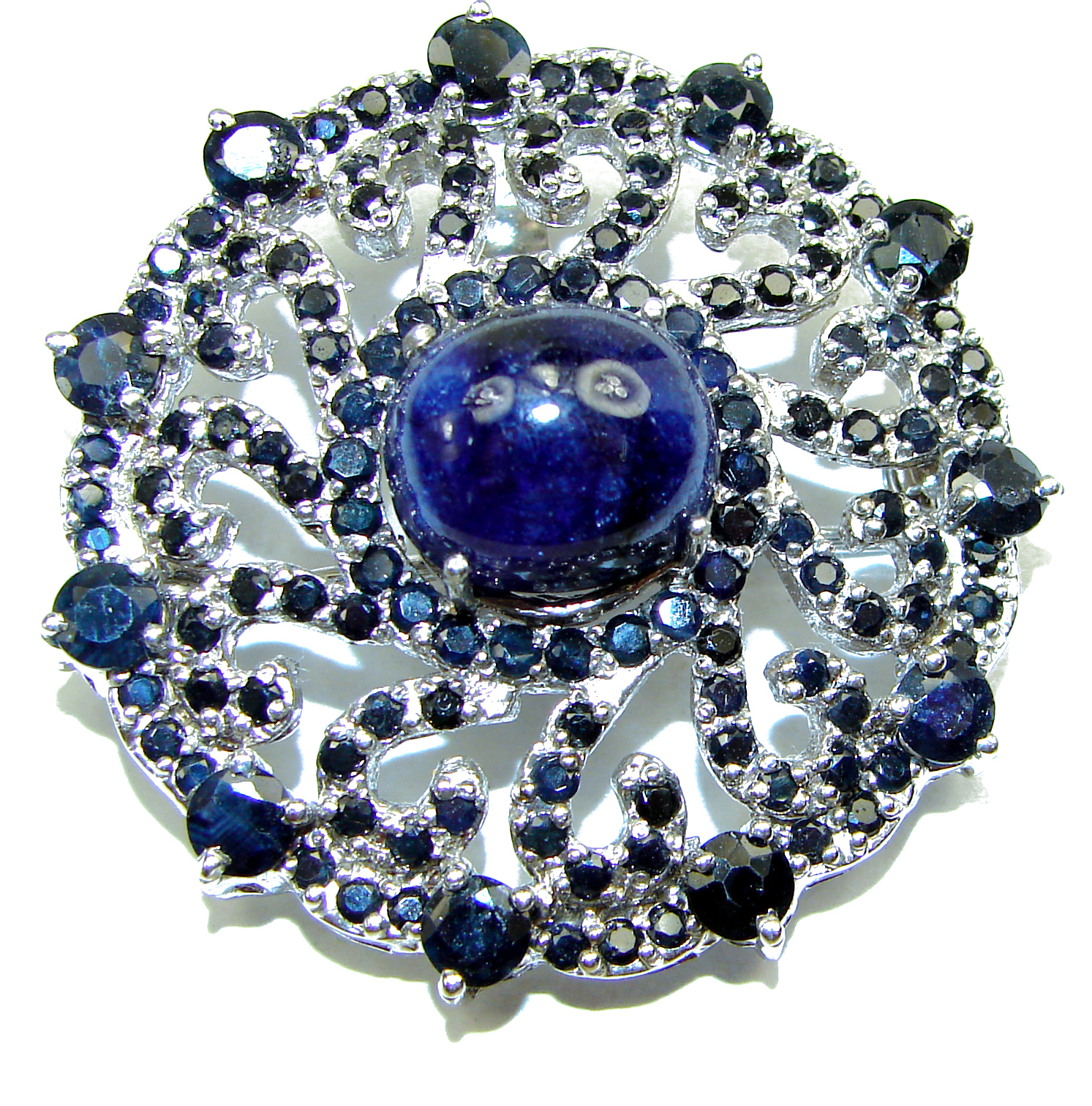 Classy Blue Beauty genuine Star Sapphire .925 Sterling Silver handmade Pendant - Brooch