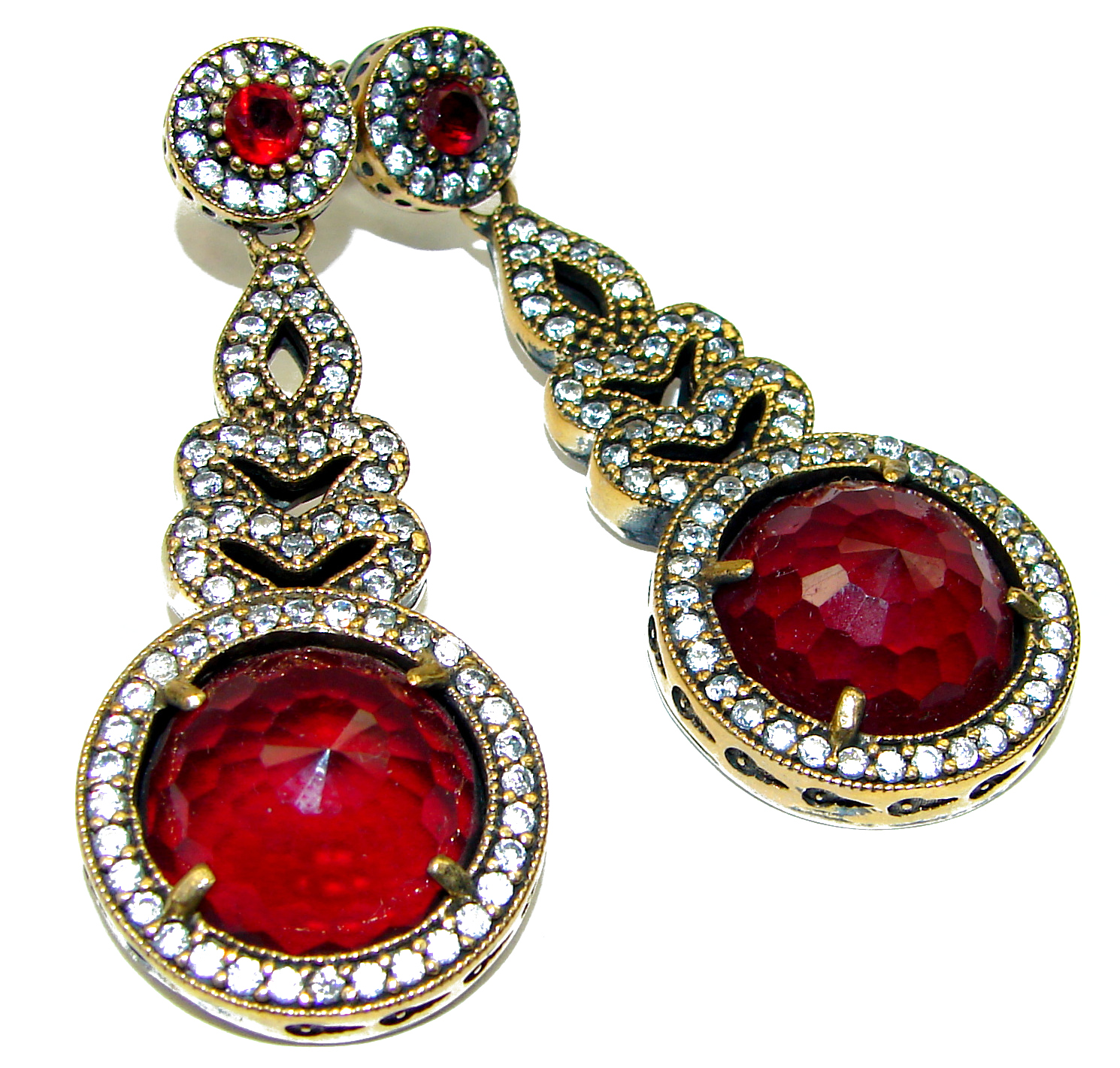 Spectacular Ruby 14K White Gold over .925 Sterling Silver handcrafted earrings