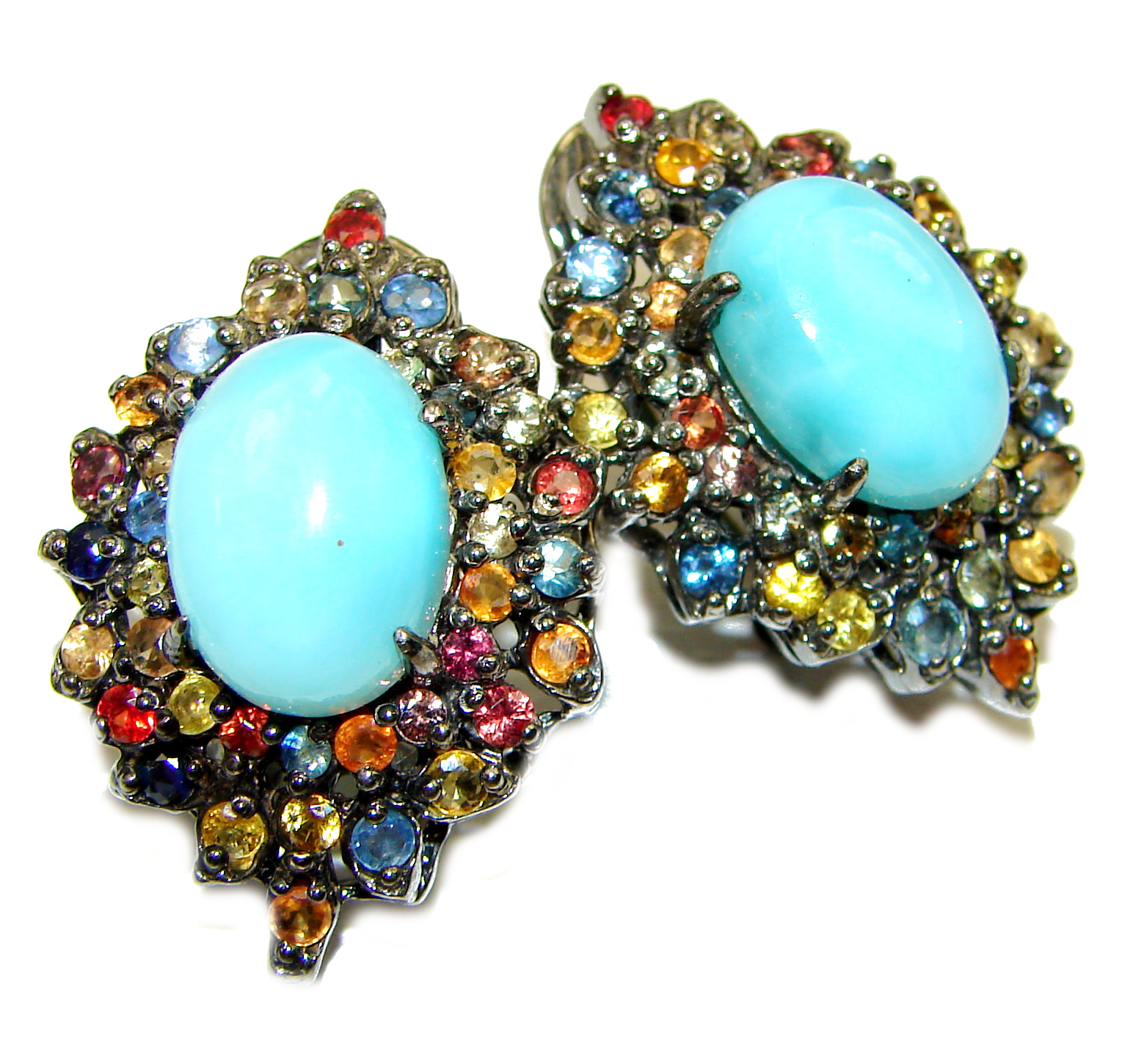 Precious Blue Larimar black rhodium over .925 Sterling Silver handmade earrings