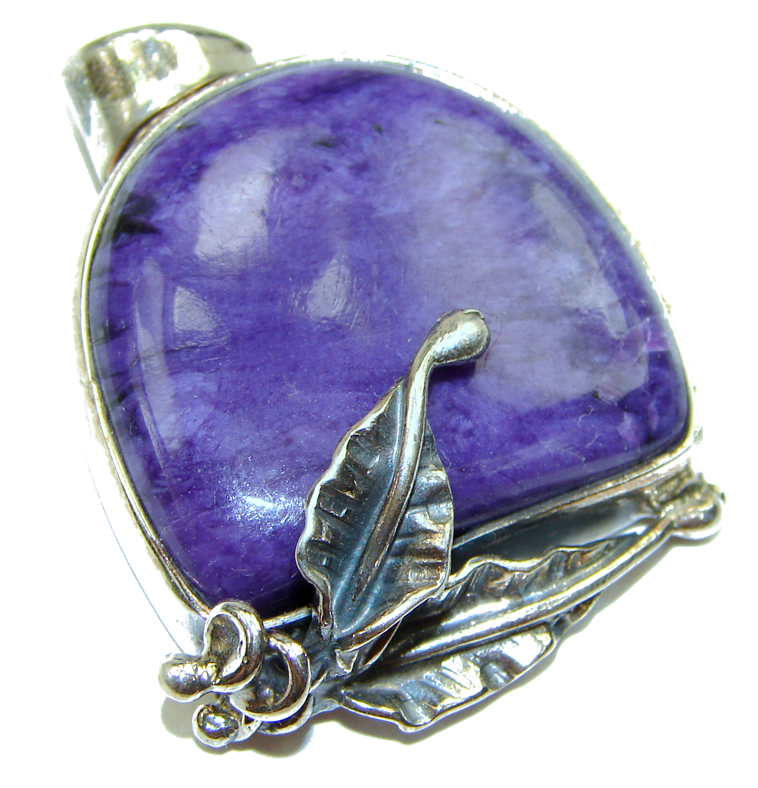 Unique genuine Siberian Charoite .925 Sterling Silver handmade Pendant