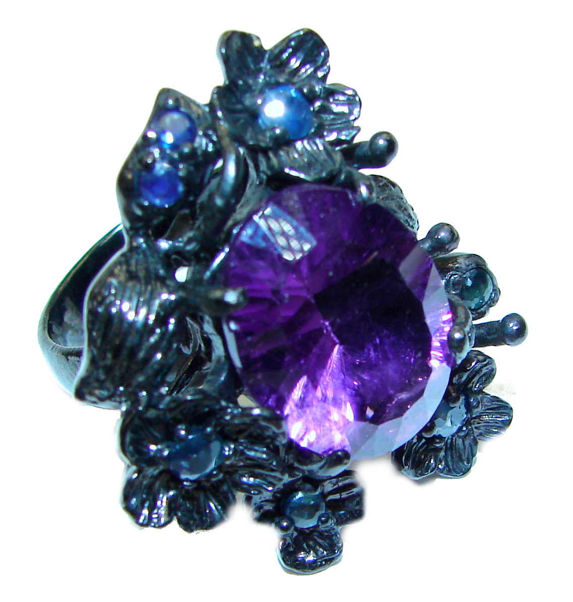 Exclusive Amethyst black rhodium over .925 Sterling Silver HANDCRAFTED Ring size 7 1/2