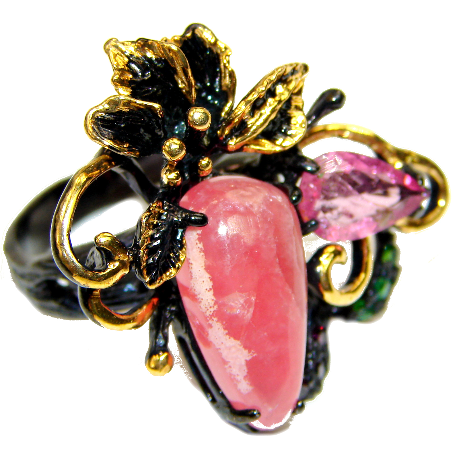 Argentinian Rhodochrosite .925 Sterling Silver handmade ring size 9