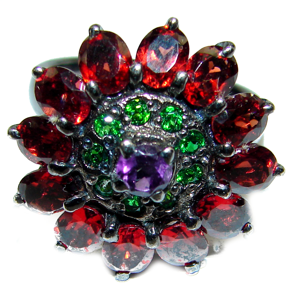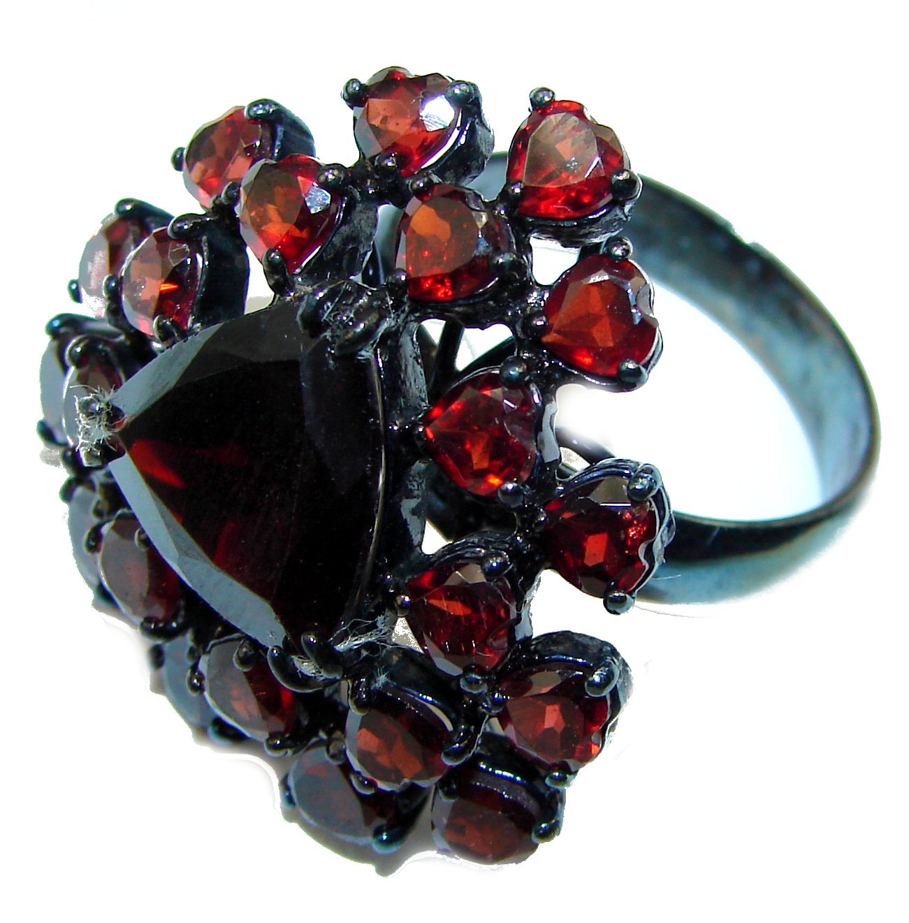 Scarlet Starlight Authentic Garnet black rhodium over .925 Sterling Silver Ring size 8 1/2