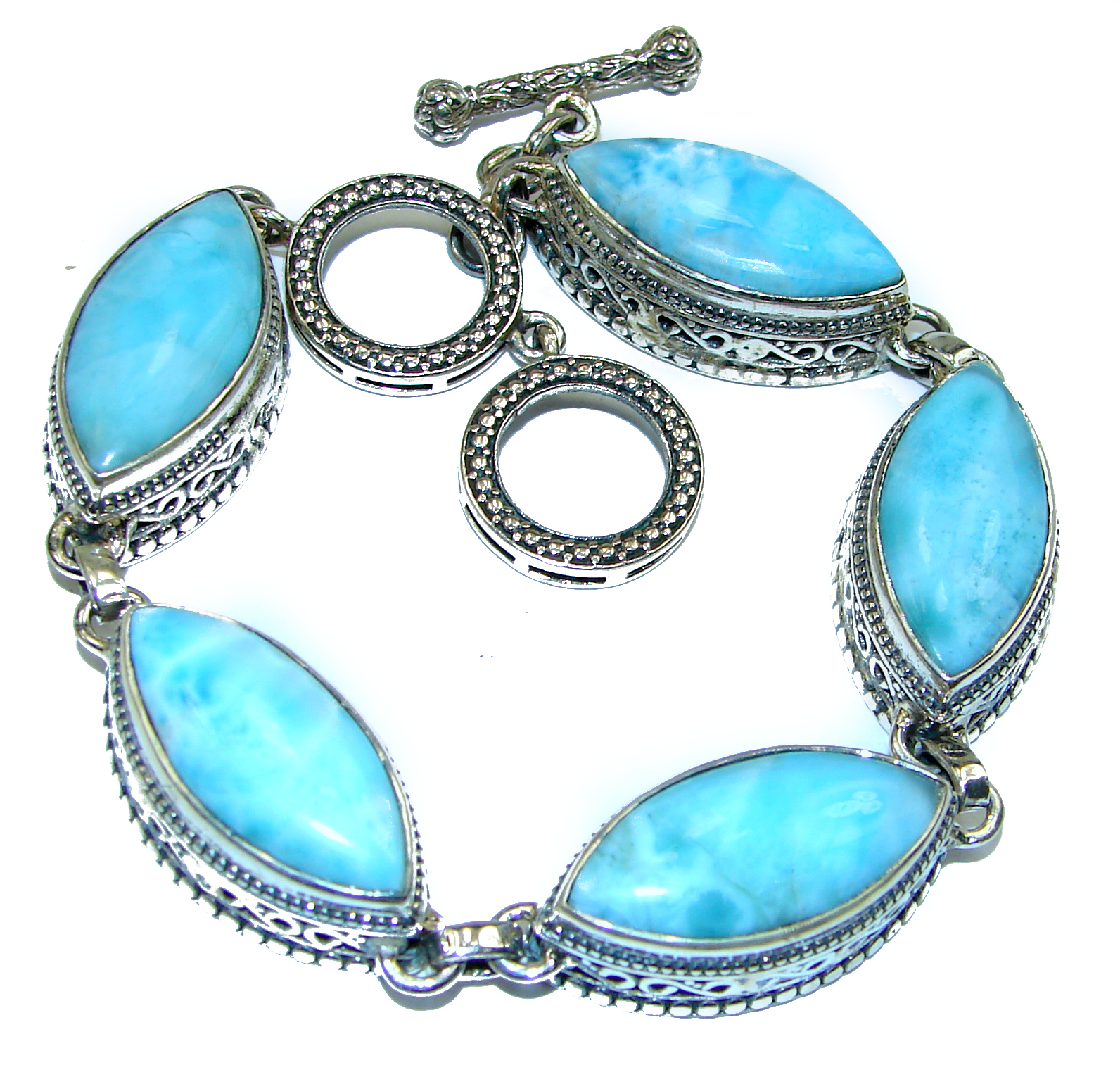 Luxury Genuine Larimar .925 Sterling Silver handmade Bracelet