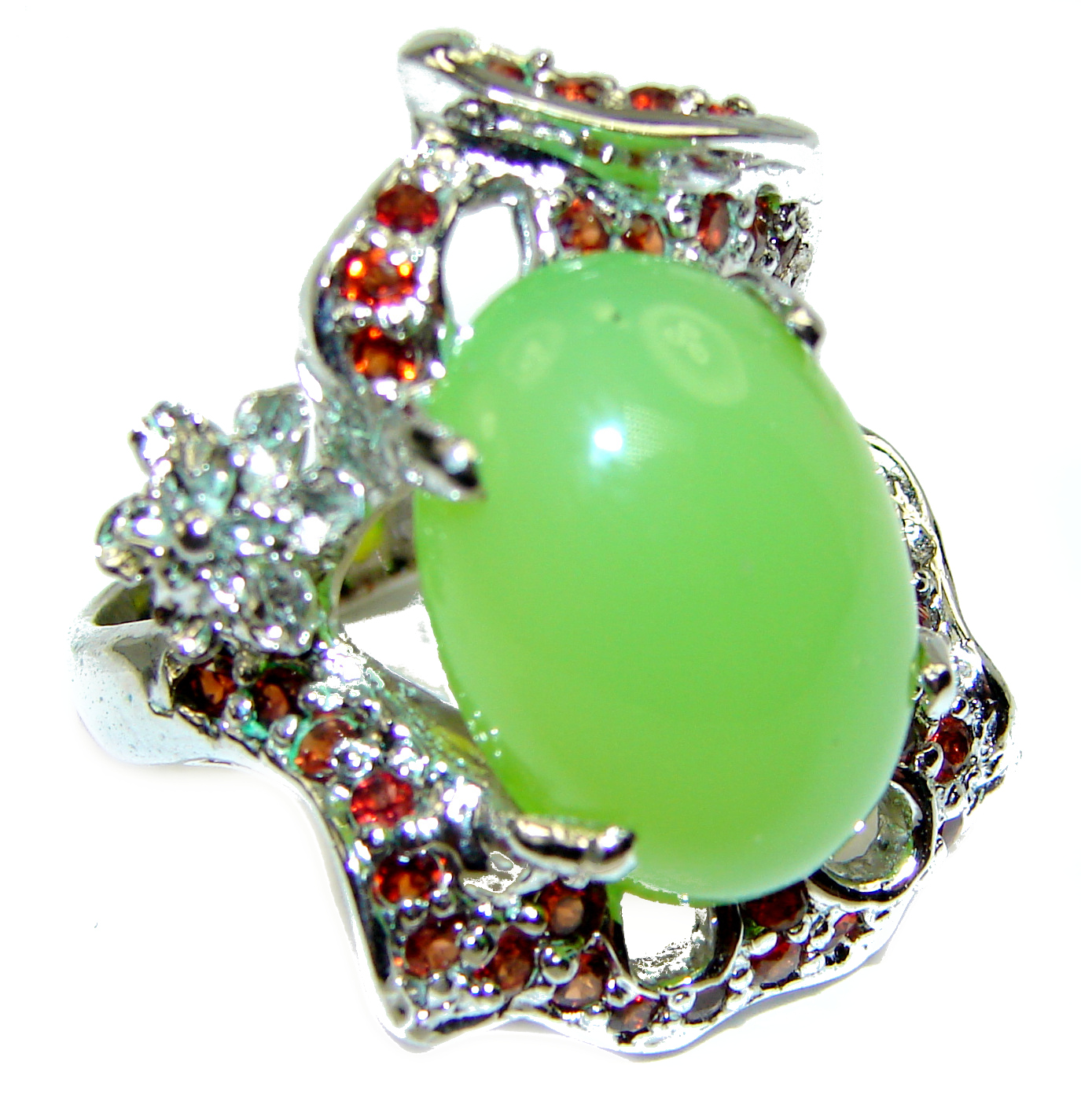 LARGE Natural Prehnite .925 Sterling Silver handmade ring s. 8