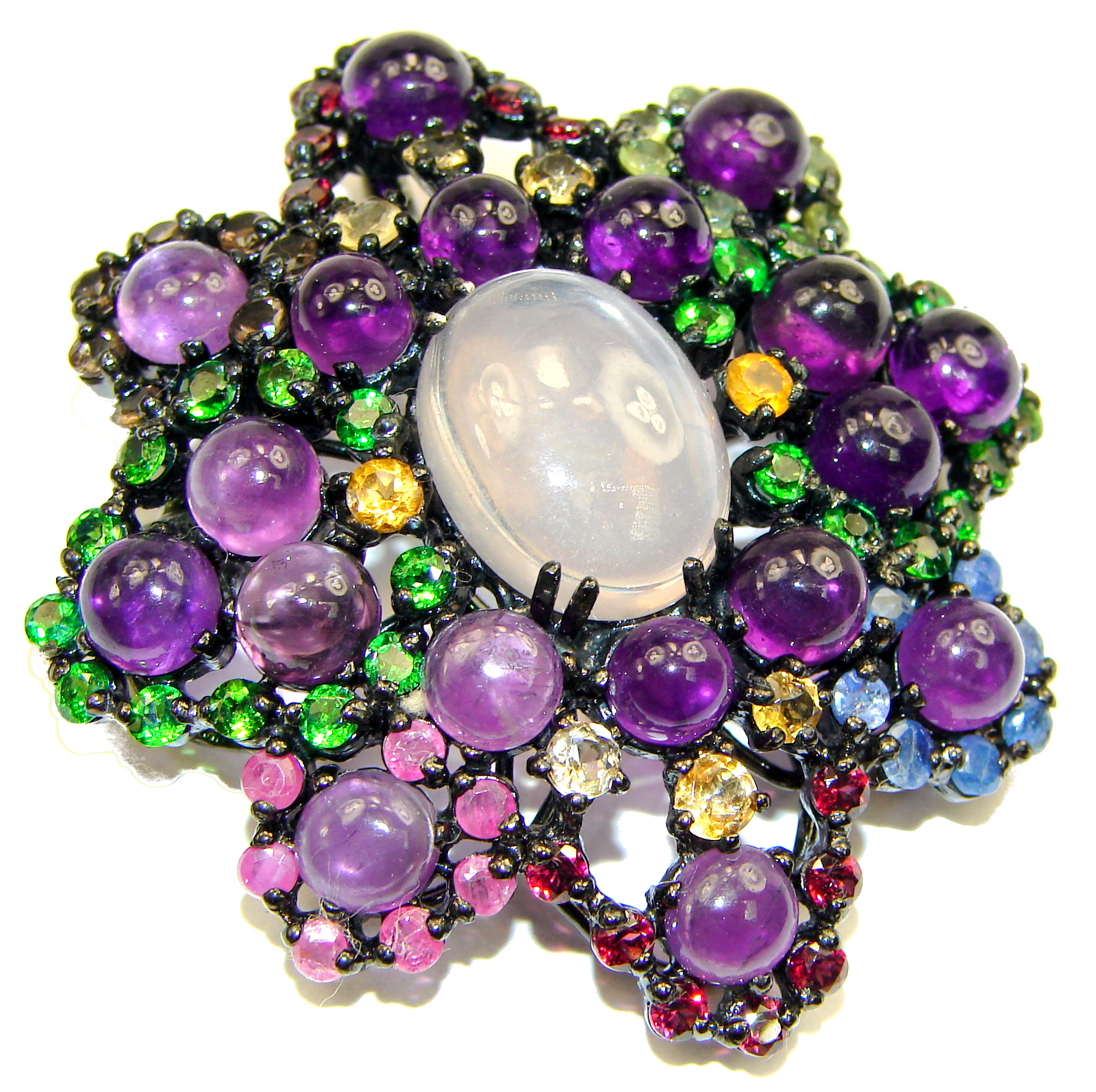 Vintage style Beauty genuine Rose Quartz black rhodium over .925 Sterling Silver handmade LARGE Pendant - Brooch