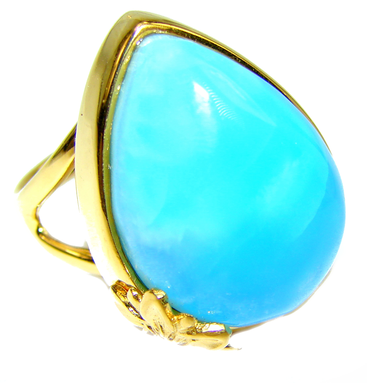 22.6 carat Larimar 18K Gold over .925 Sterling Silver handcrafted Ring s. 8