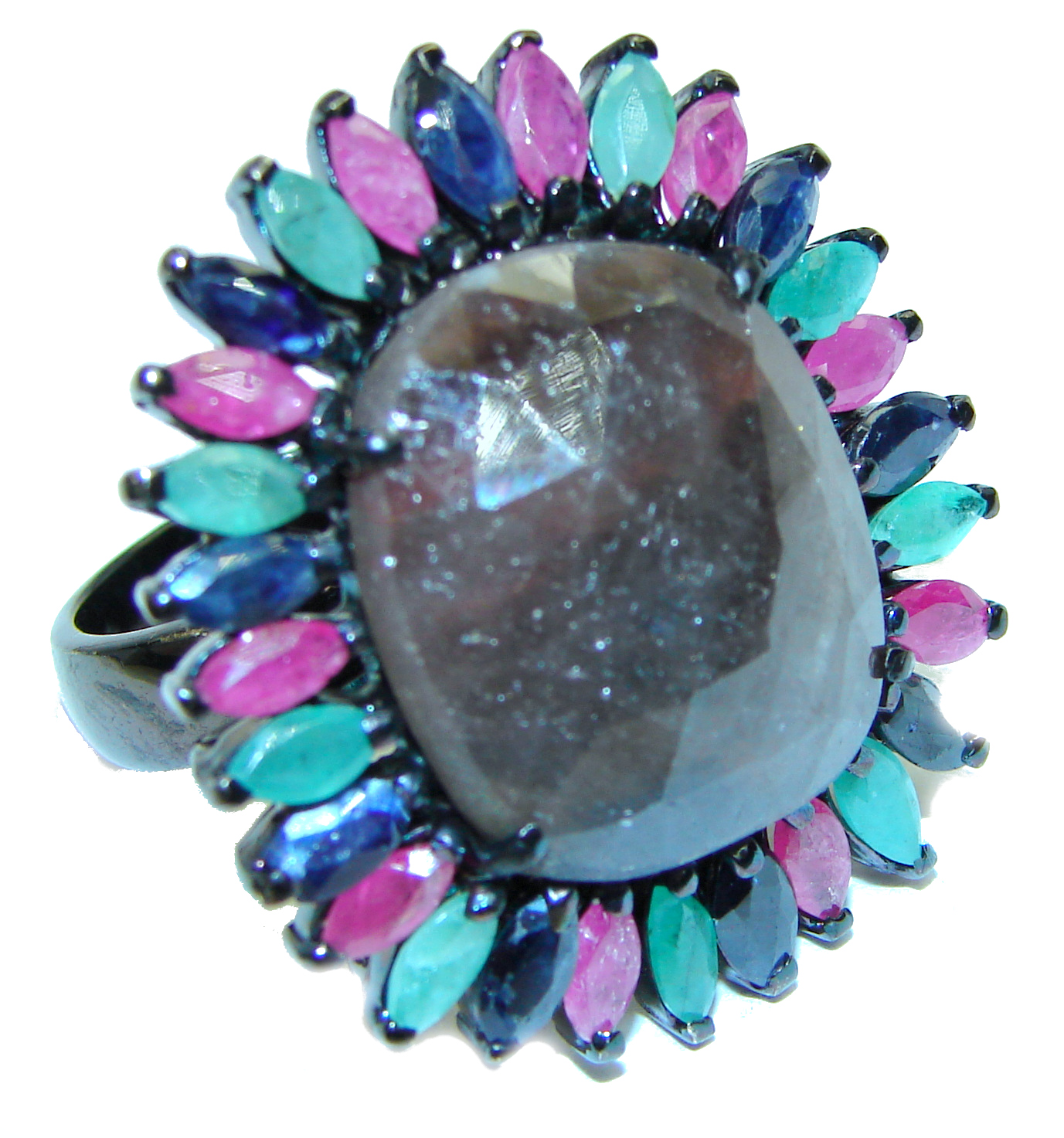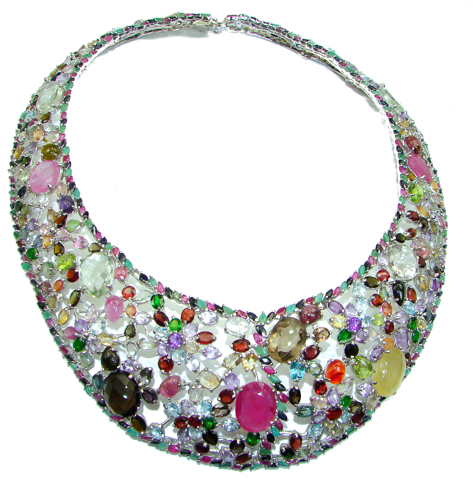 Dolce Vita HUGE authentic Ruby & Multistones .925 Sterling Silver handcrafted necklace