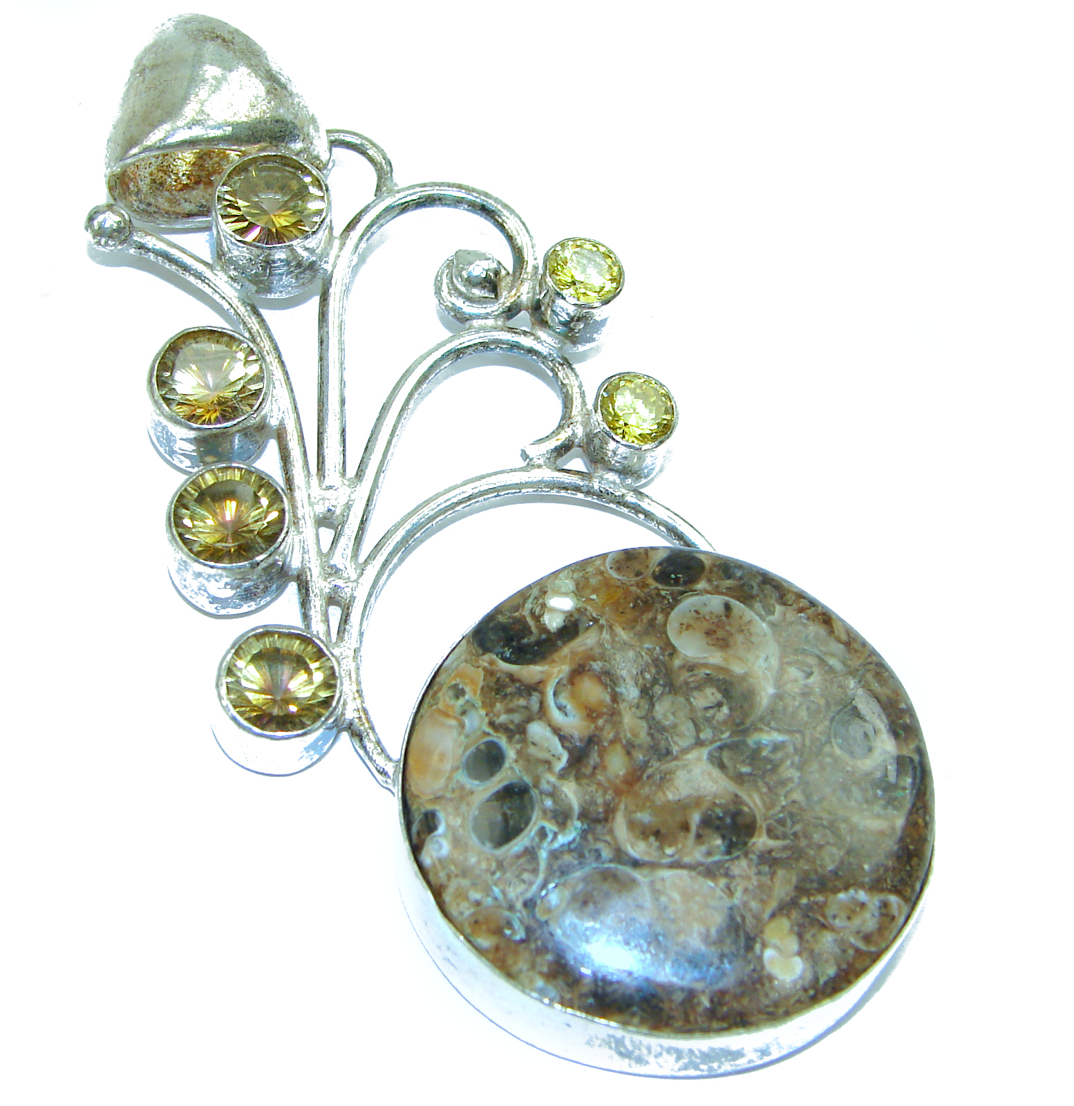 Simple Brown Fossilized Crinoid .925 Sterling Silver handcrafted pendant