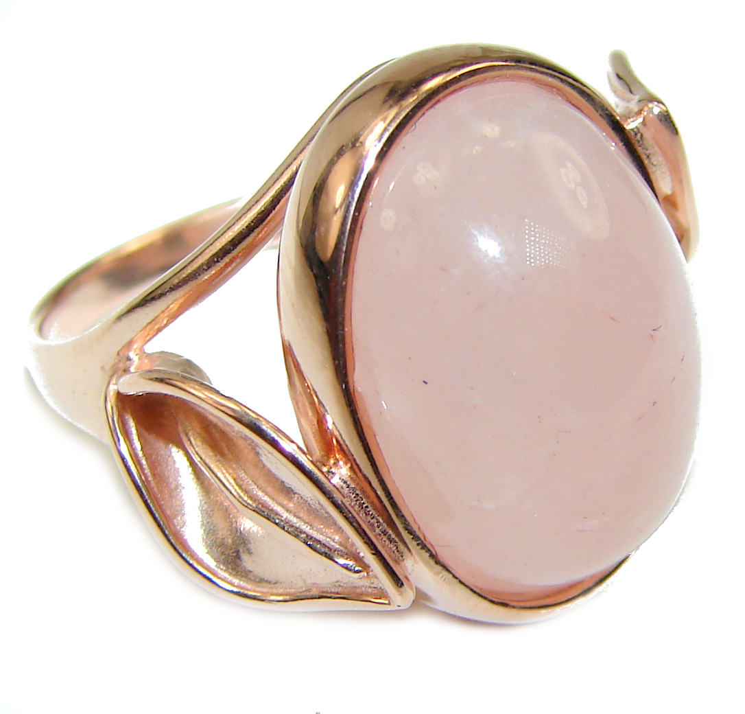 Large 10.2 carat Rose Quartz 18K Gold over .925 Sterling Silver brilliantly handcrafted ring s. 8 1/2
