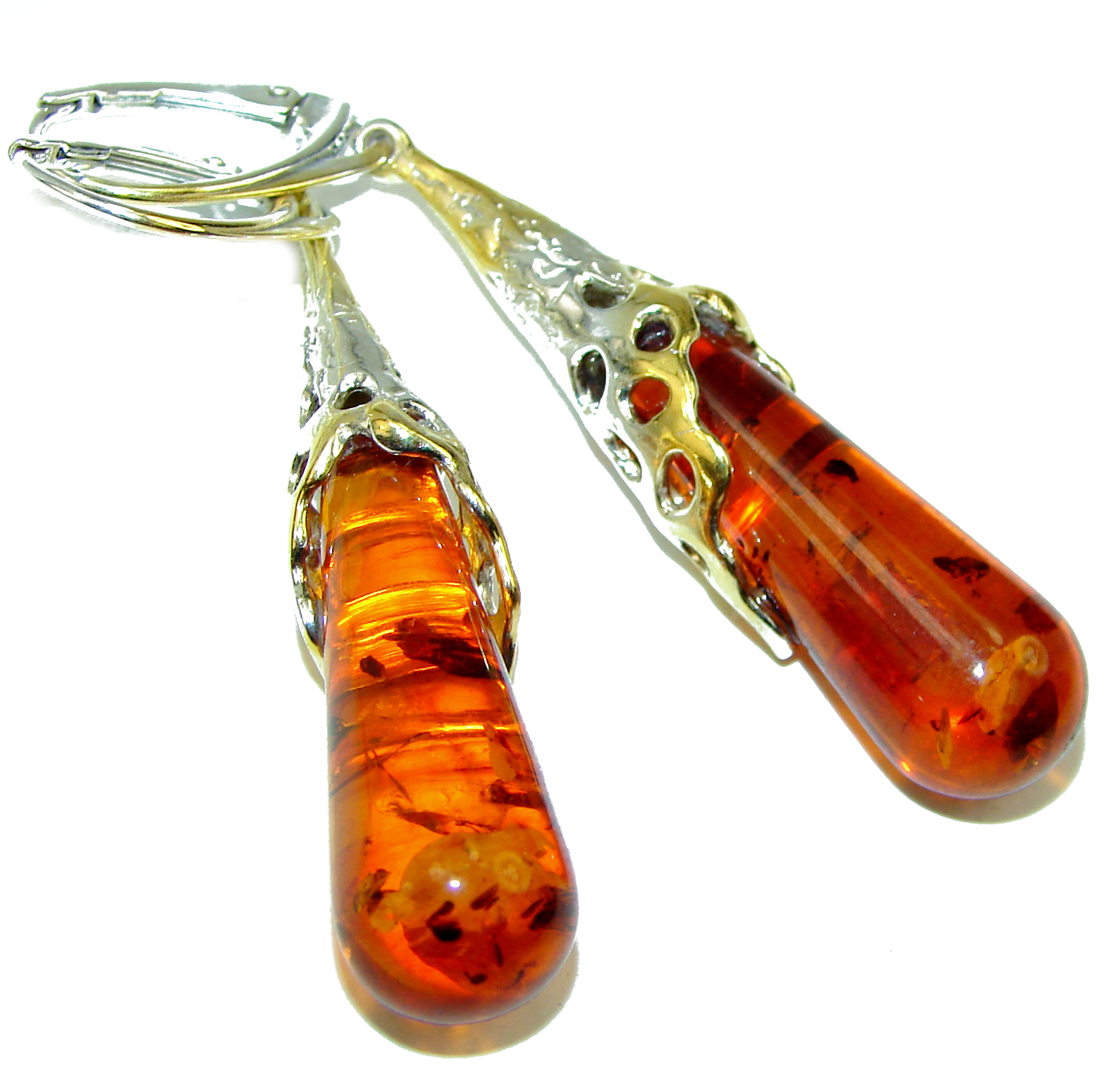 Baltic Polish Amber 2 tones .925 Sterling Silver Earrings
