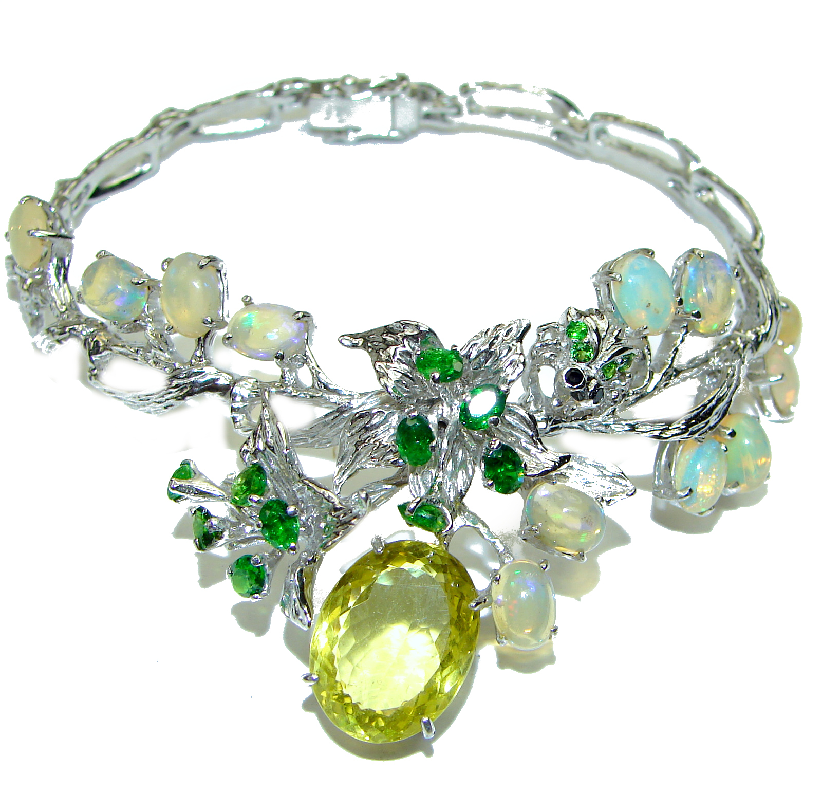 Floral Design Nature inspired Citrine .925 Sterling Silver handcrafted Bracelet