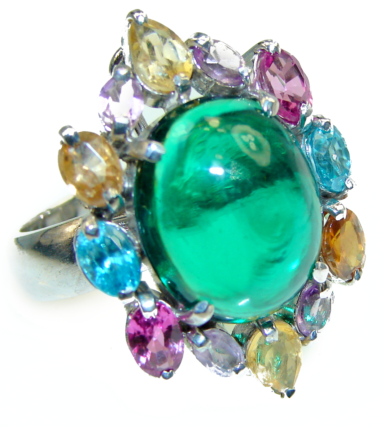 Stunning Green Topaz .925 Sterling Silver handmade Ring size 7 1/4