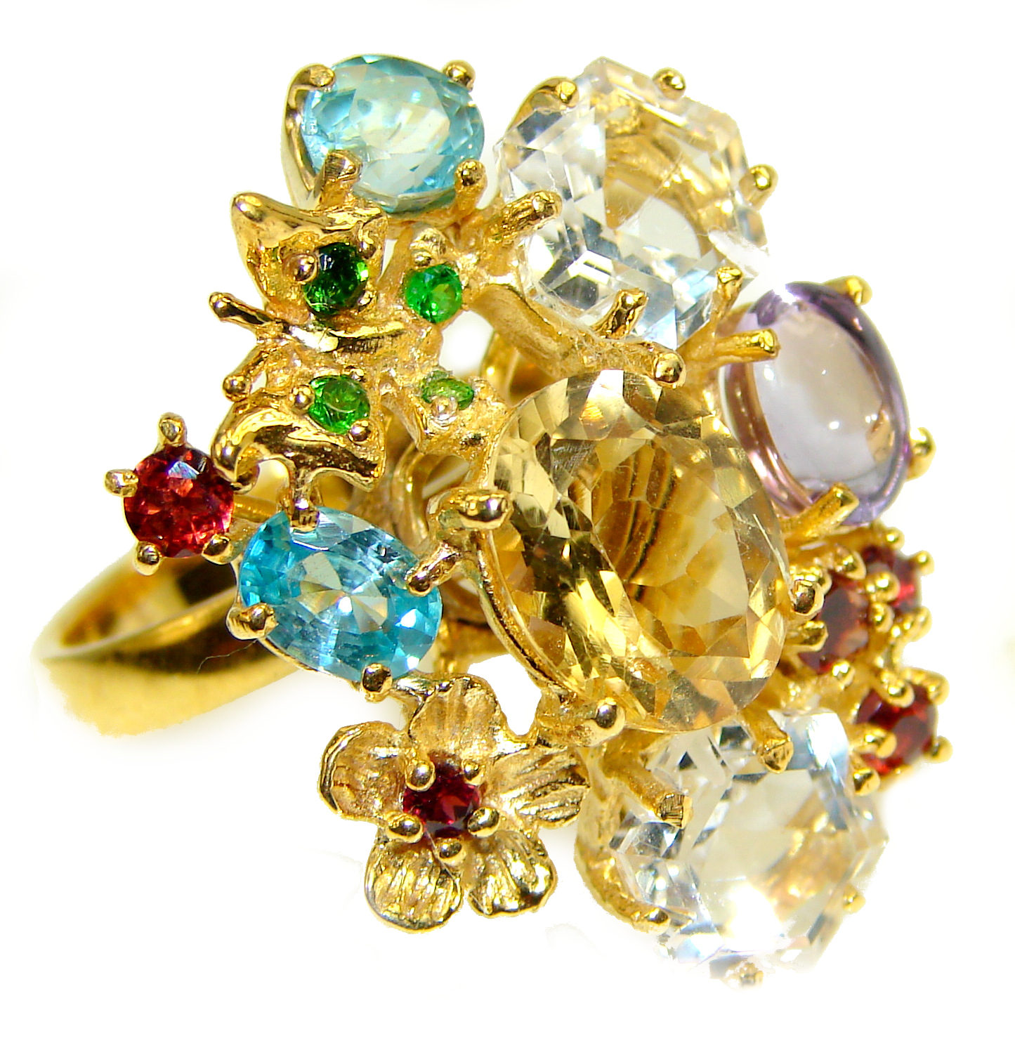 Vintage Style Citrine .925 Sterling Silver handmade HUGE Cocktail Ring s. 9