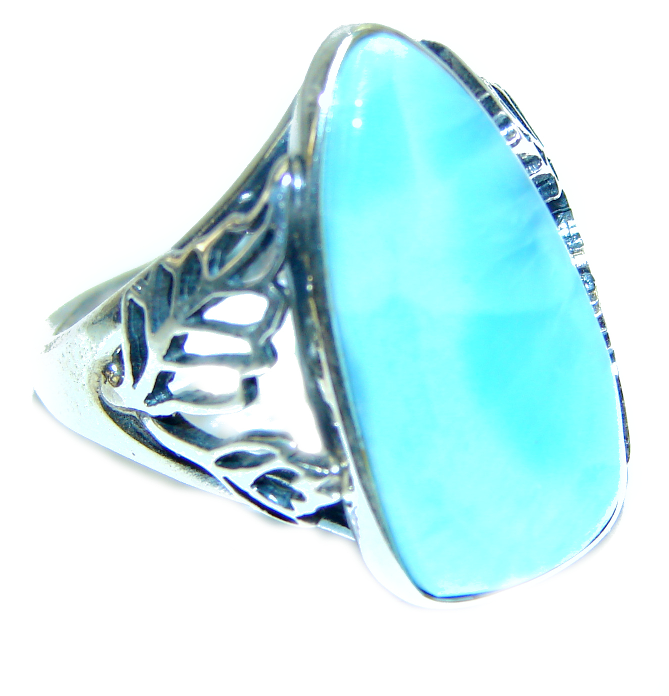 Pure Perfection 10.5 carat Larimar .925 Sterling Silver handcrafted Ring s. 8