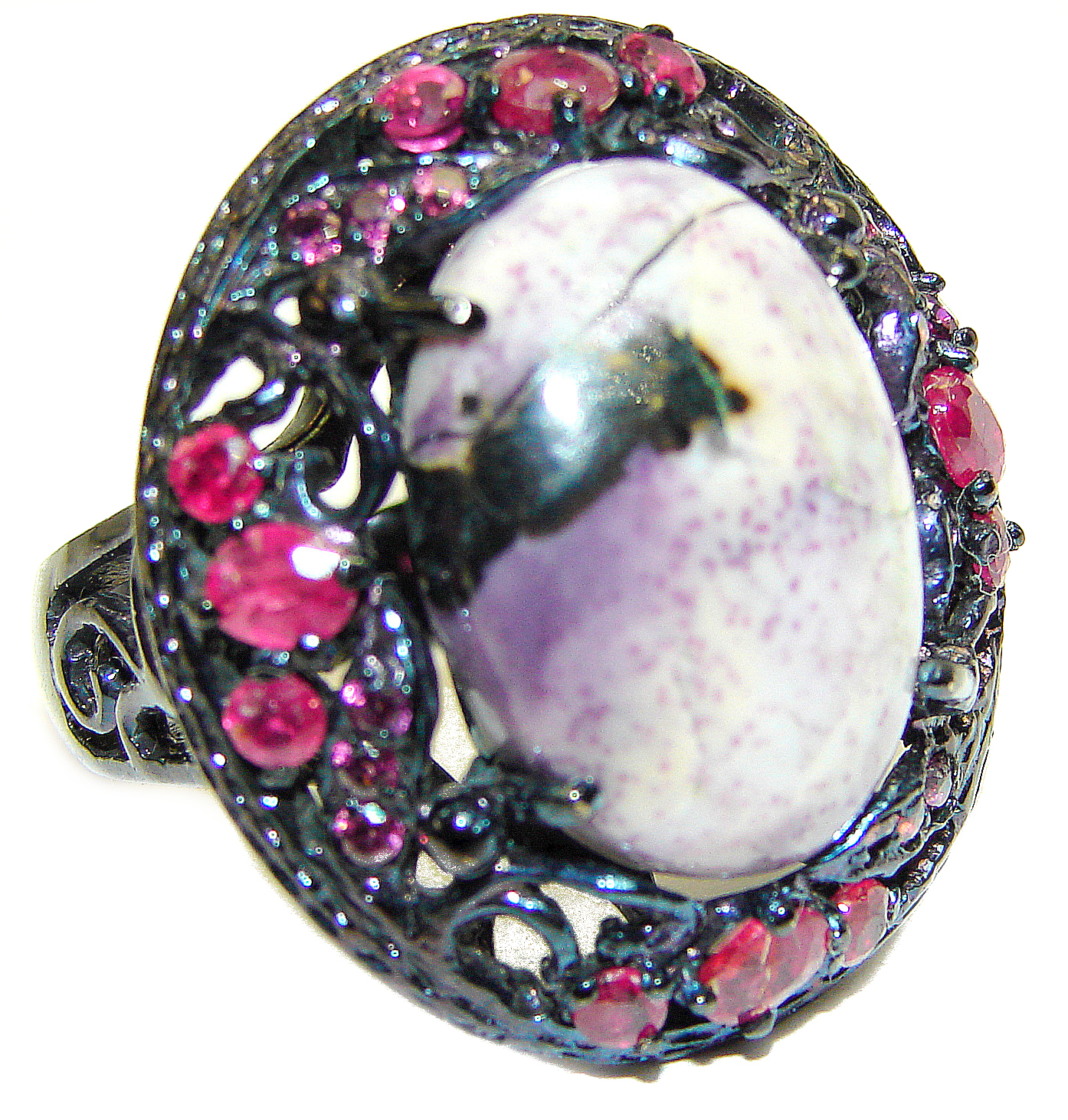 Perfect Tiffany Jasper Ruby Black Rhodium over .925 Sterling Silver handmade Ring s. 8 1/4