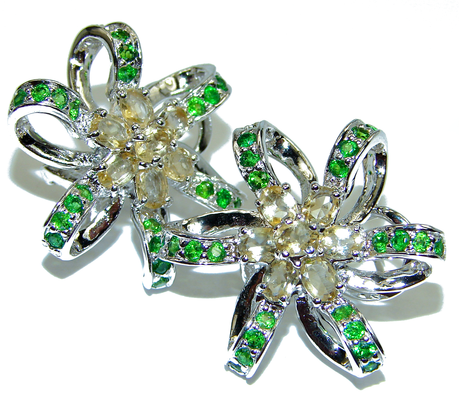 Great Bow Citrine Chrome Diopside .925 Sterling Silver handmade earrings