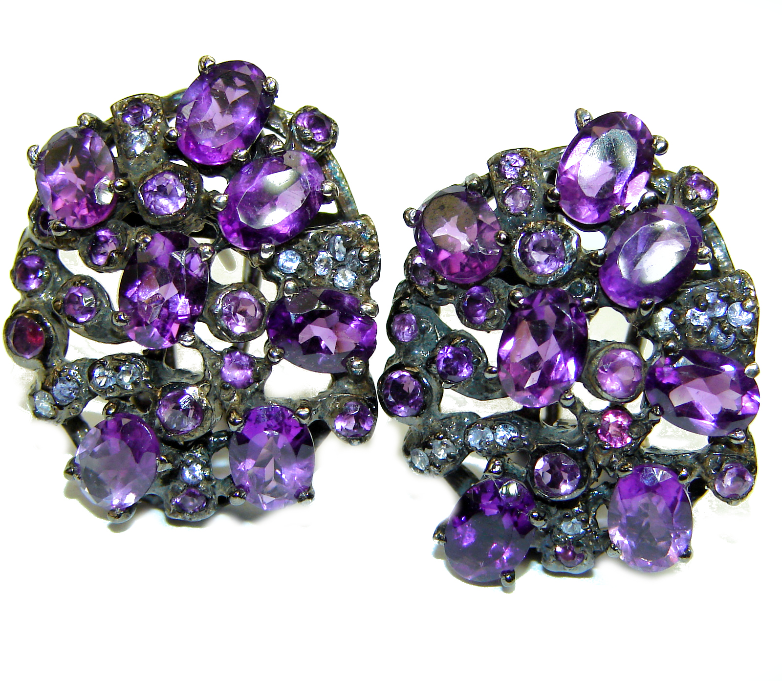 Purple Romance Amethyst black Rhodium over .925 Sterling Silver handcrafted earrings