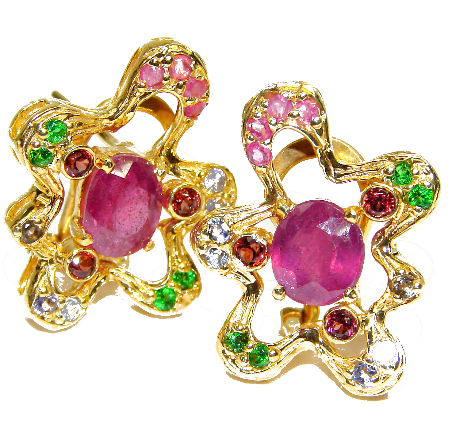 Spectacular natural Ruby 14k Gold over .925 Sterling Silver handcrafted earrings