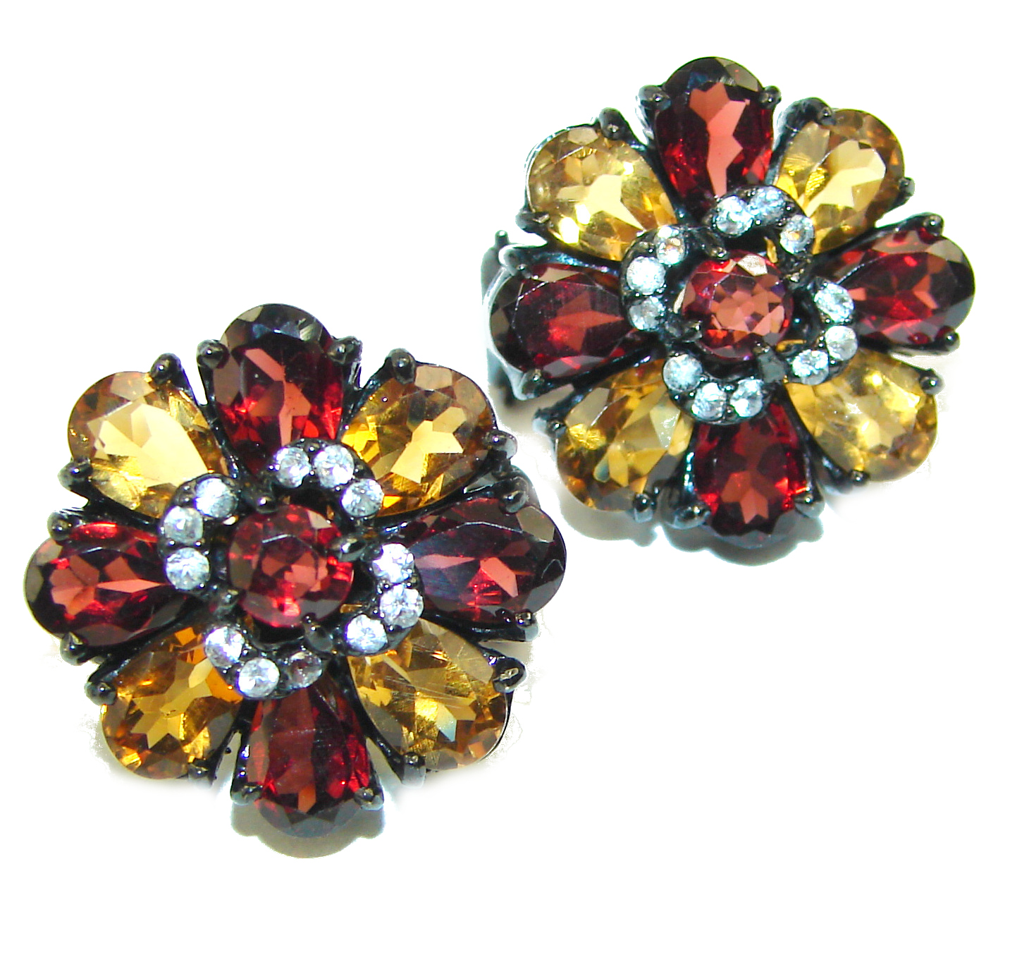 Spectacular Garnet black rhodium .925 Sterling Silver handcrafted earrings