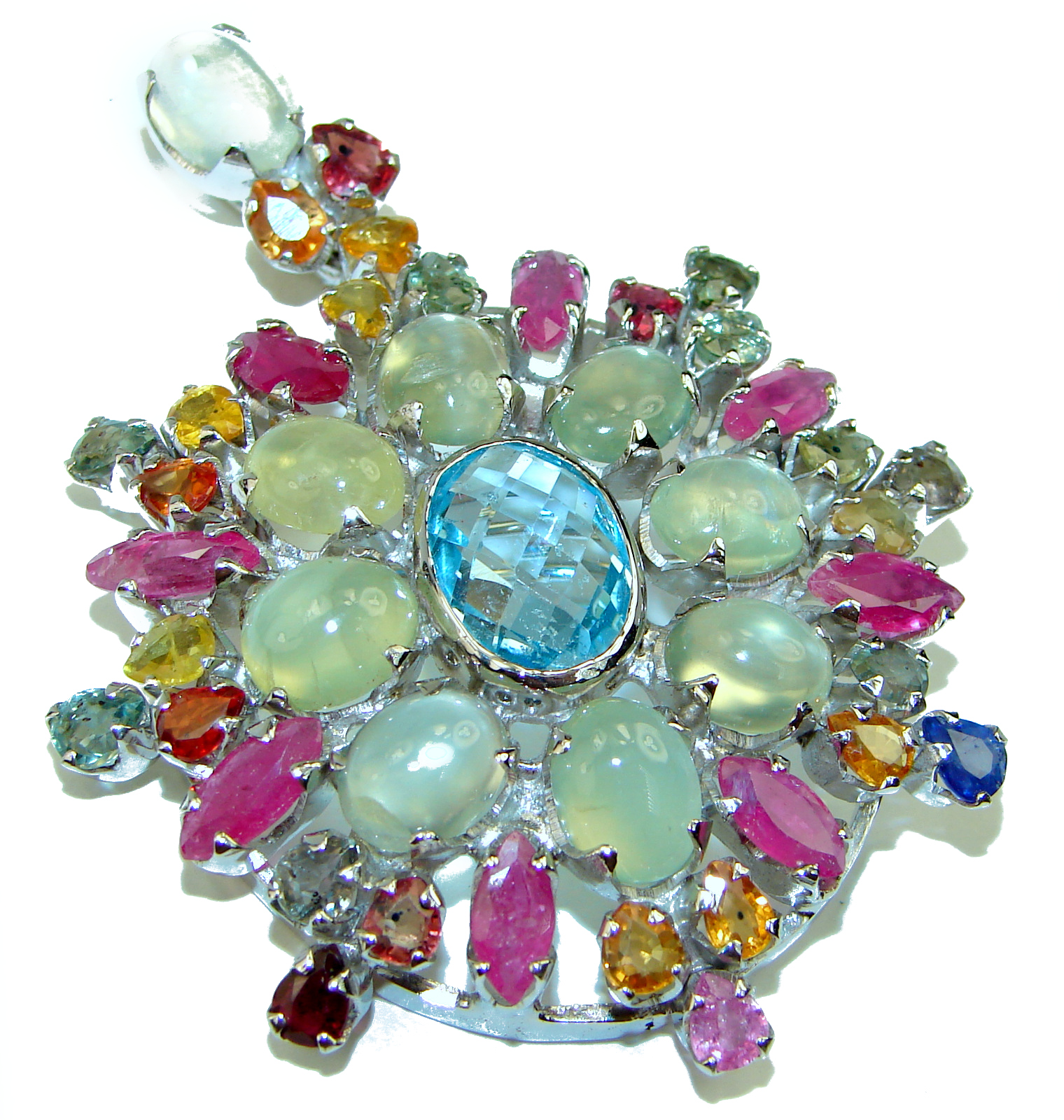 Incredible authentic Swiss Blue Topaz .925 Sterling Silver handmade pendant brooch