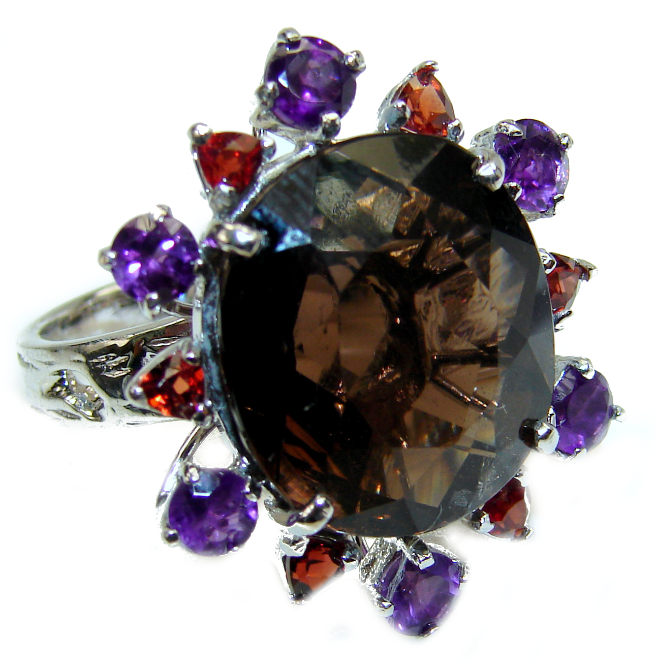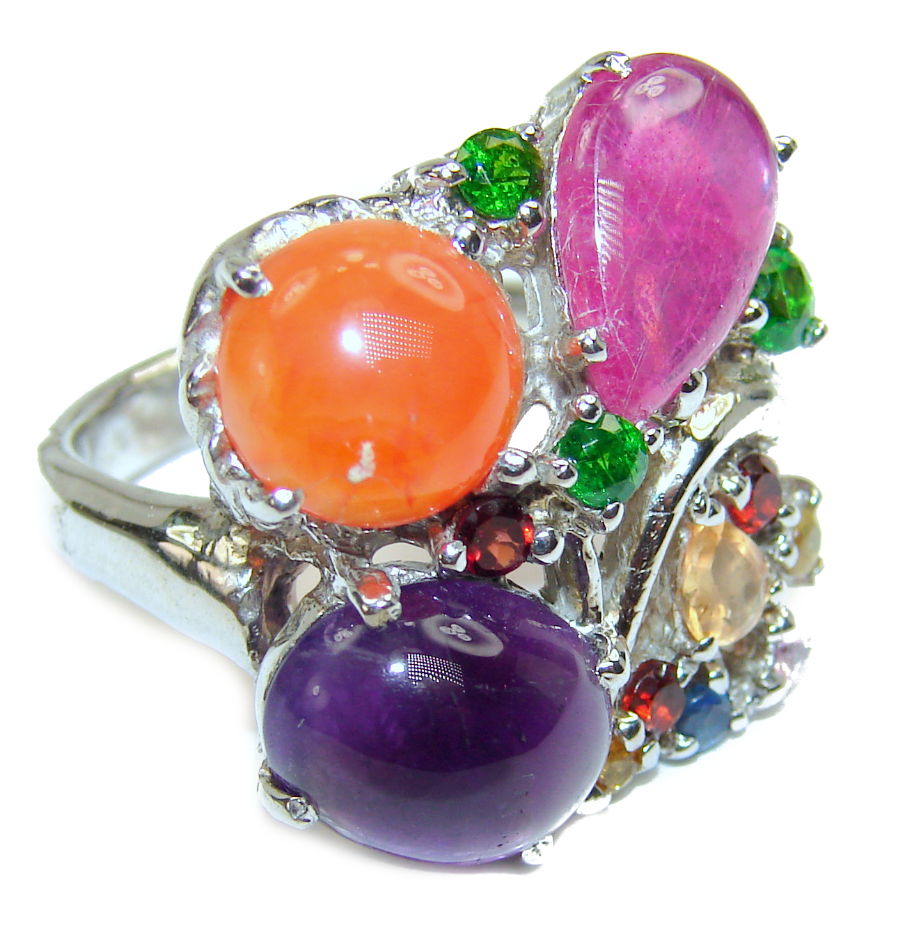 Massive Genuine Multistone .925 Sterling Silver handmade Cocktail Ring s. 8 1/4