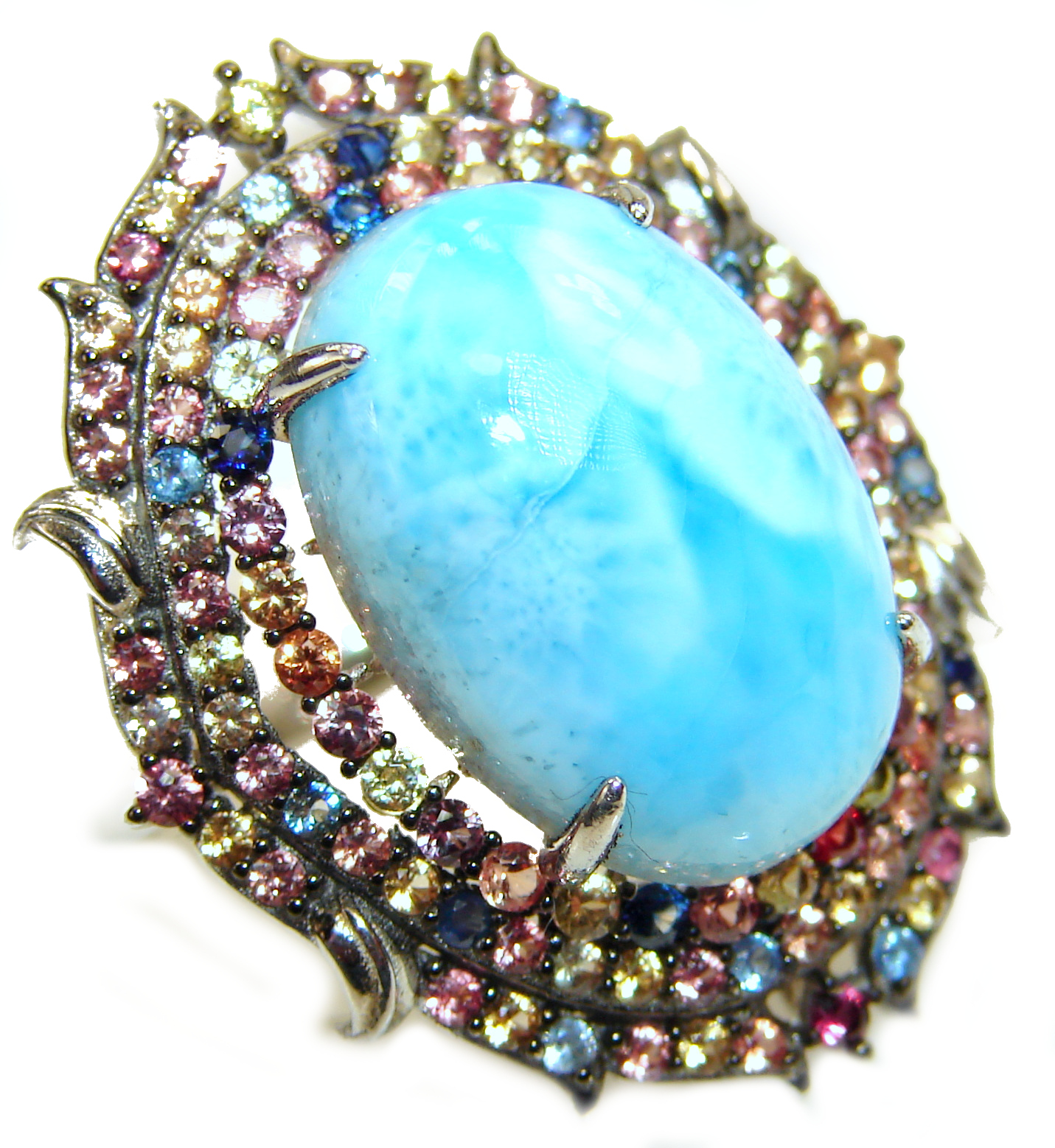 Natural Larimar Sapphire .925 Sterling Silver handcrafted Ring s. 8