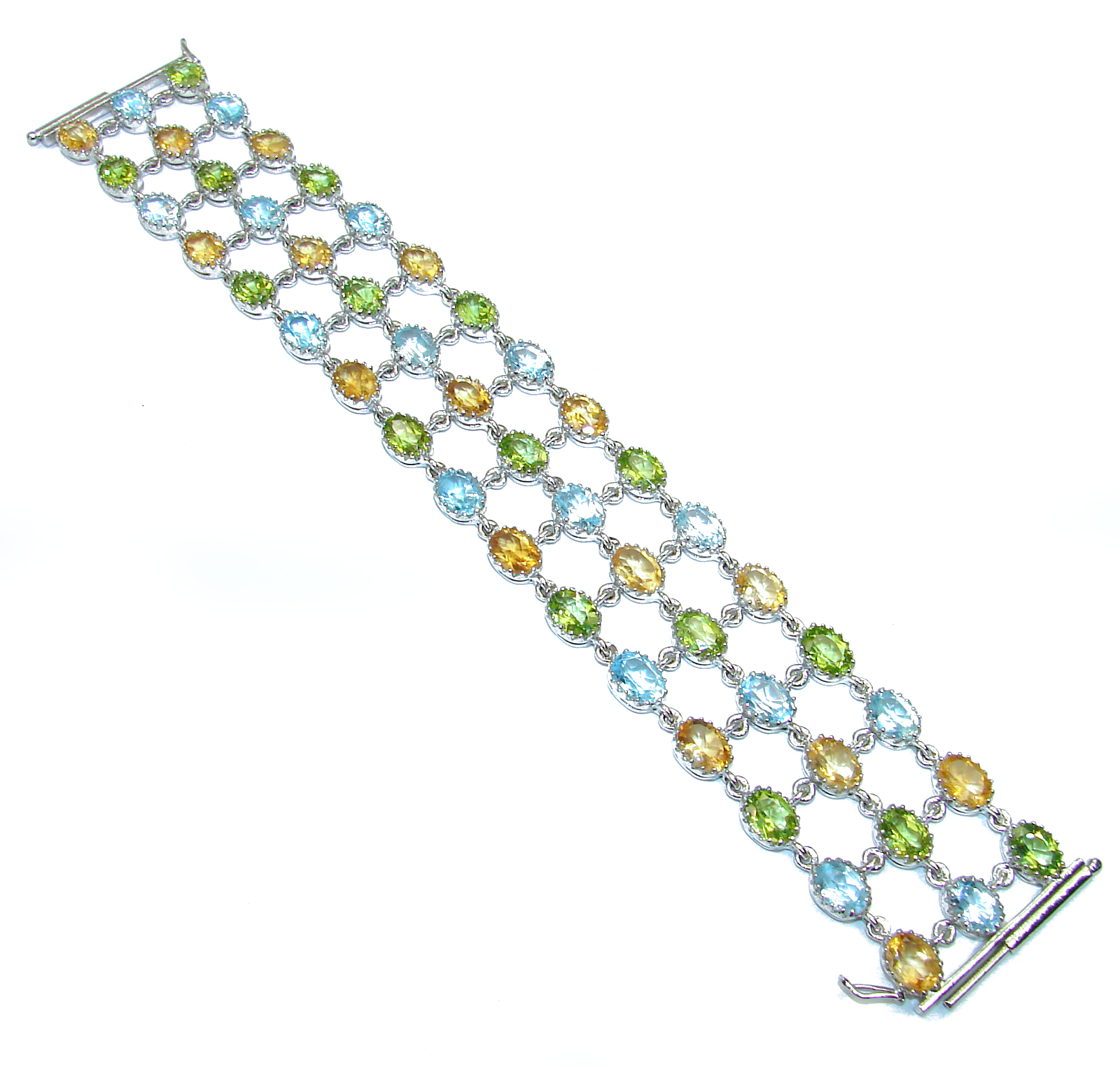 Chunky Flawless Peridot Citrine .925 Sterling Silver handcrafted Bracelet