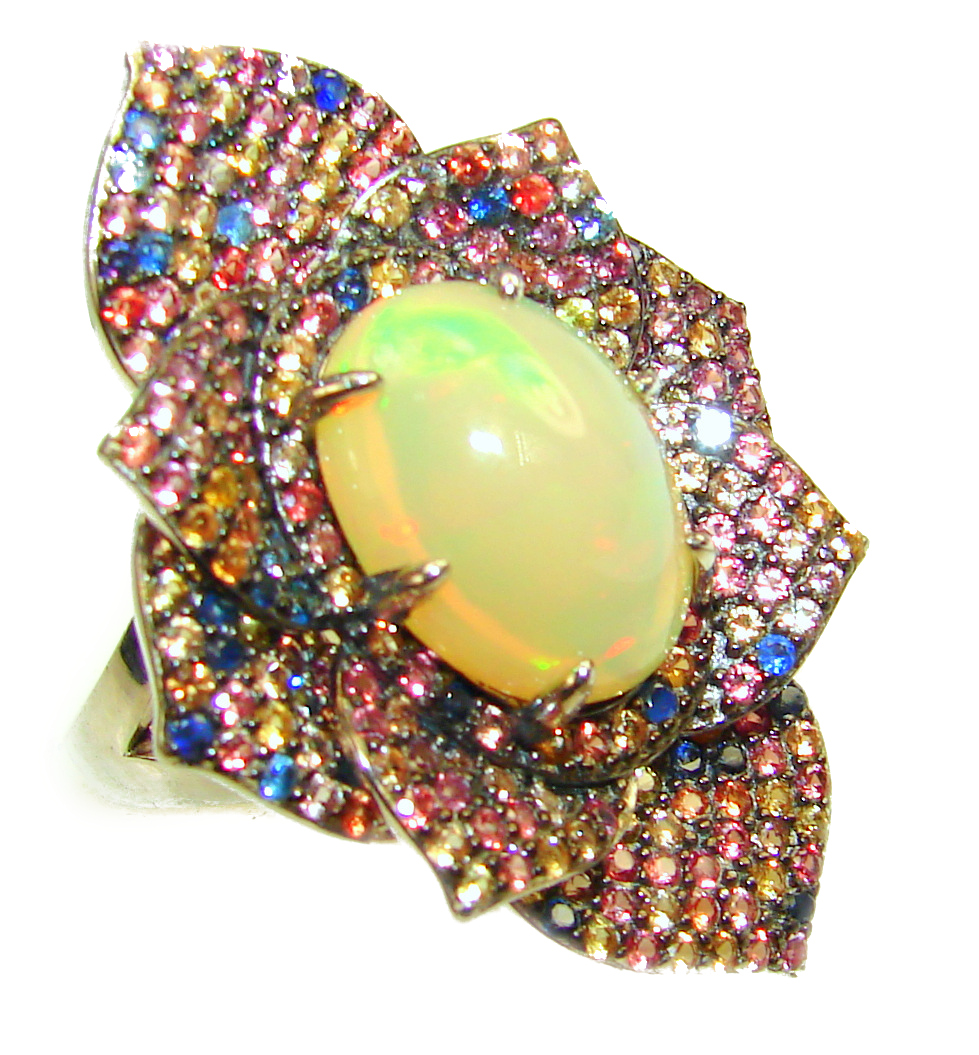 COSMIC POWER Genuine 8.5 carat Ethiopian Opal Sapphire .925 Sterling Silver handmade Ring size 9