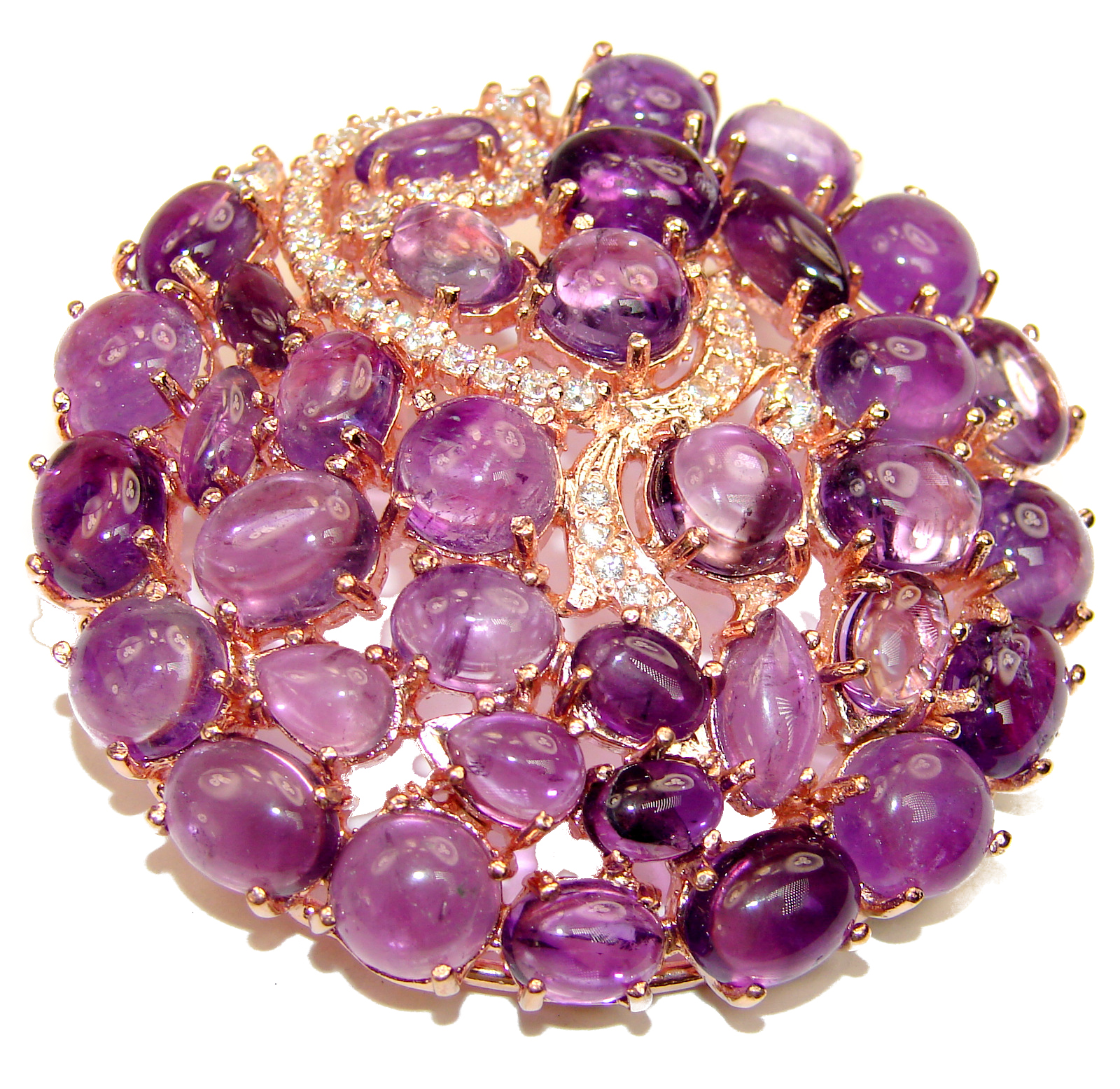 Large Vintage Beauty genuine Amethyst 18K Gold over .925 Sterling Silver handmade Pendant - Brooch