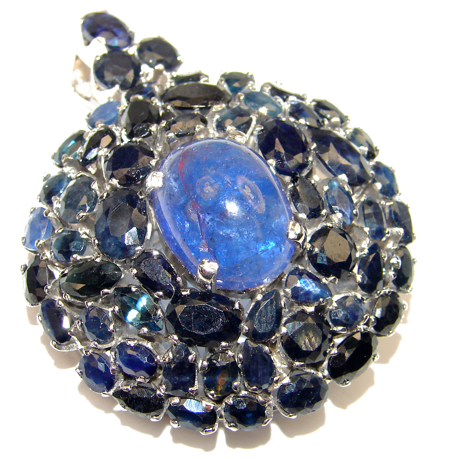 Classy Blue Beauty genuine Sapphire .925 Sterling Silver handmade Pendant - Brooch